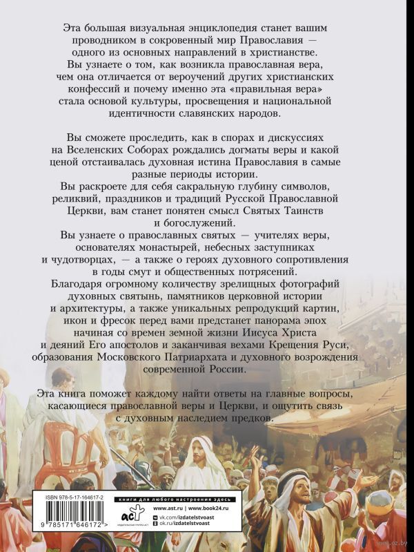 Православие – не просто религия, это ожившие в величайших памятниках история, культура и искусство, это многочисленные яркие свидетельства силы духа и чудес, совершенных по молитвам к Богу. Вот уже более полутора тысячелетий православная вера объединяет народы, вдохновляет подвижников и формирует национальные традиции. Но главное – это направление христианства проповедует истинное учение о Боге. В данной энциклопедии рассказывается о том, как возникло Православие и чем оно отличается от других христианских конфессий, представлены основные периоды развития вероучения, названного "правильной верой". Листая страницы этой книги с множеством зрелищных иллюстраций, вы погрузитесь во времена земной жизни Иисуса Христа и деяний Его апостолов, первых Поместных Церквей и Вселенских Соборов.