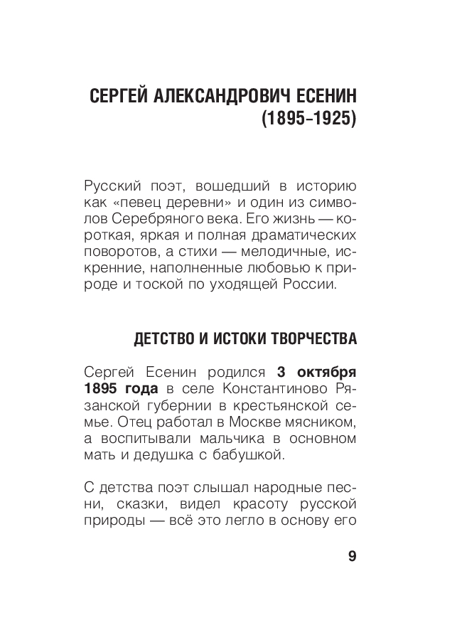 В стихах Есенина – вся Россия: берёзовые рощи и ярмарочный гул, тревоги времени и вечная жажда любви. Здесь и нежность юных лет, и горькая исповедь зрелости, и светлая грусть прощания.