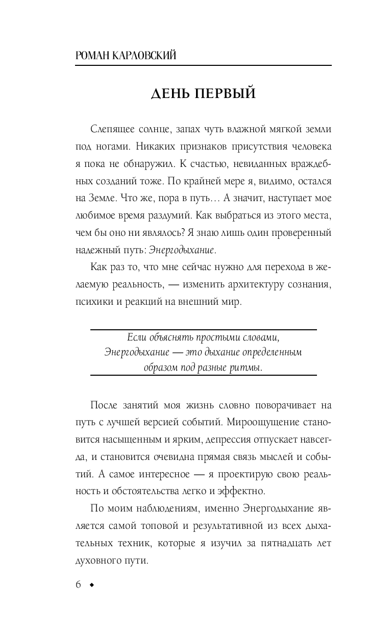 В своей книге Роман рассказывает о специфике метода Энергодыхания, его впечатляющей пользе и о том, как с его помощью добиться исполнения своих желаний. Издание включает мощные авторские практики, способные усилить энергетику, расширить сознание, восстановить организм и избавить от эмоциональных и телесных блоков.