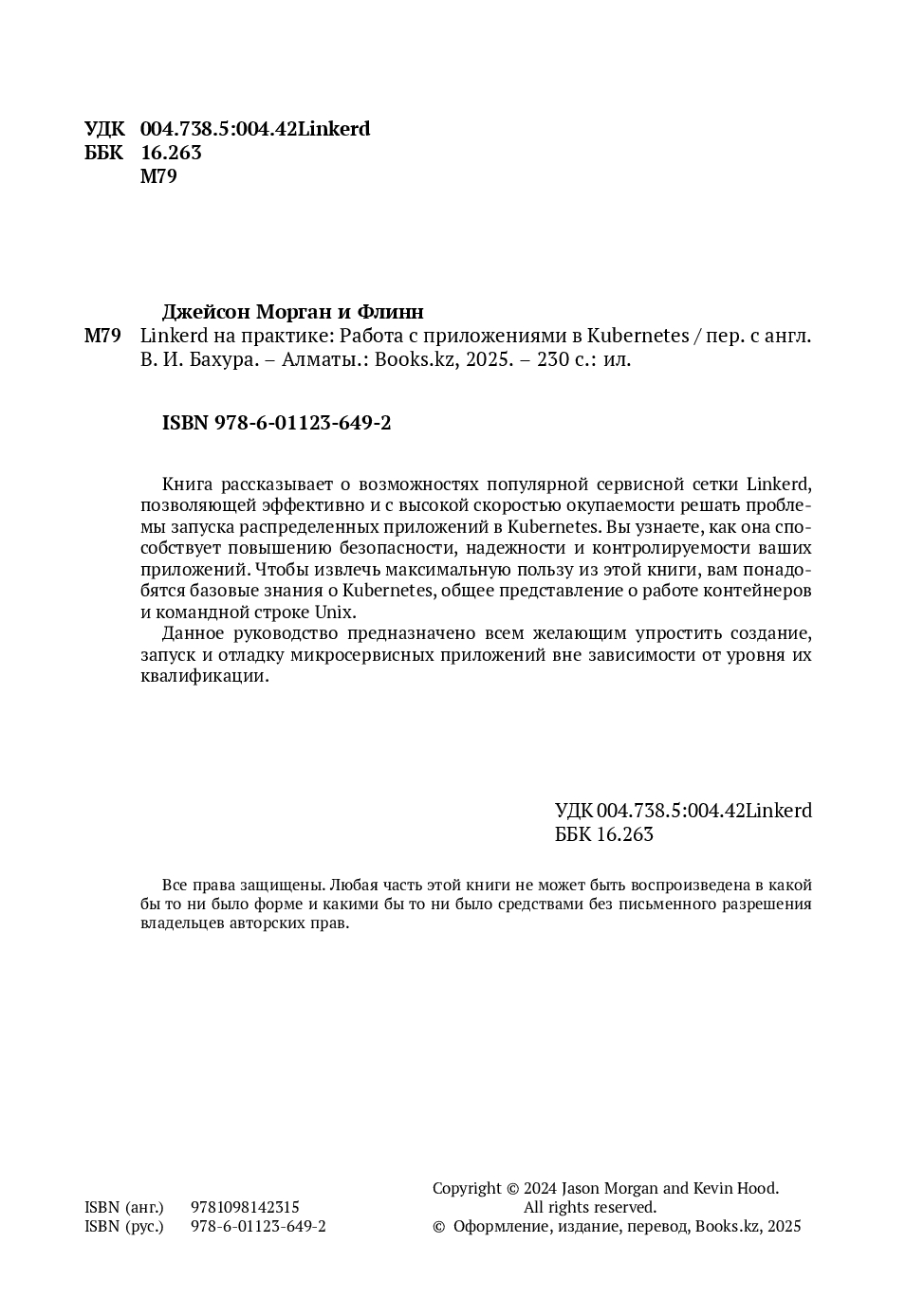 В этом практическом руководстве рассказывается о потенциале сервисной сетки Linkerd, которая дает возможность разработчикам облачных решений, включая инженеров по обеспечению стабильности платформ и сайтов, решить сложную проблему запуска распределенных приложений в Kubemetes. Опираясь на свой многолетний опыт работы в компании Buoyant – создателя Linkerd, авторы книги рассказывают о том, как эта сервисная сетка может способствовать повышению безопасности, надежности и контролируемости ваших приложений.