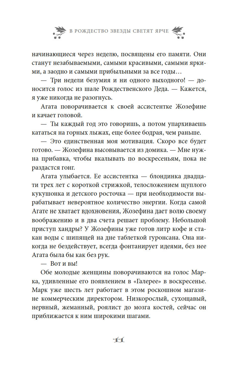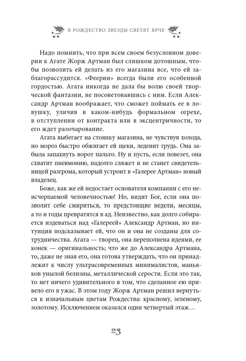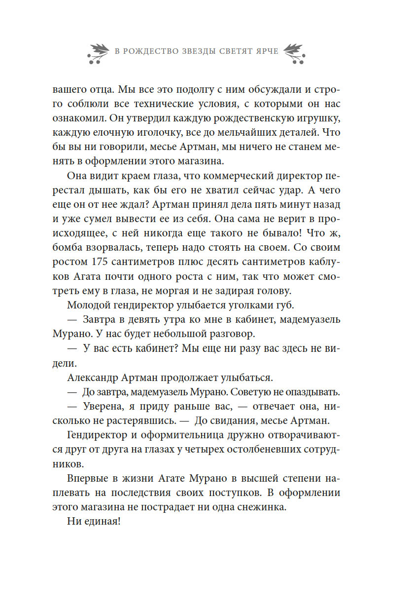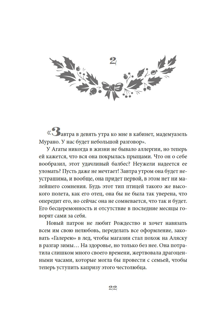 Ну ничего. Может, Александр и отдает распоряжения, зато никто не знает особенности праздничного сезона так, как Агата. Она уверена: ей еще удастся утереть ему нос. Главное, чтобы "Галерея Артман" пережила их противостояние… Ведь уже через неделю главные двери откроются сезону Рождества, и каждый гость обязан получить щедрую порцию праздничного настроения.