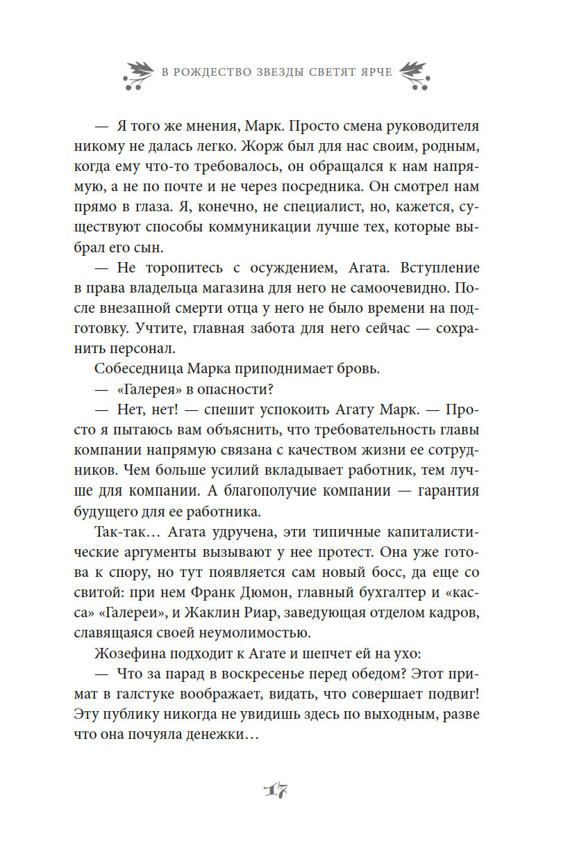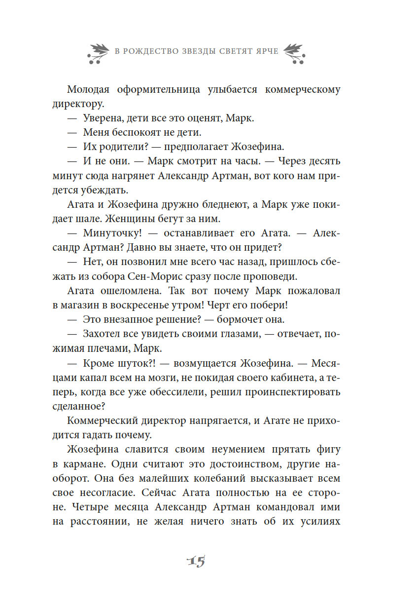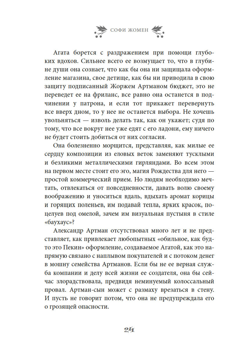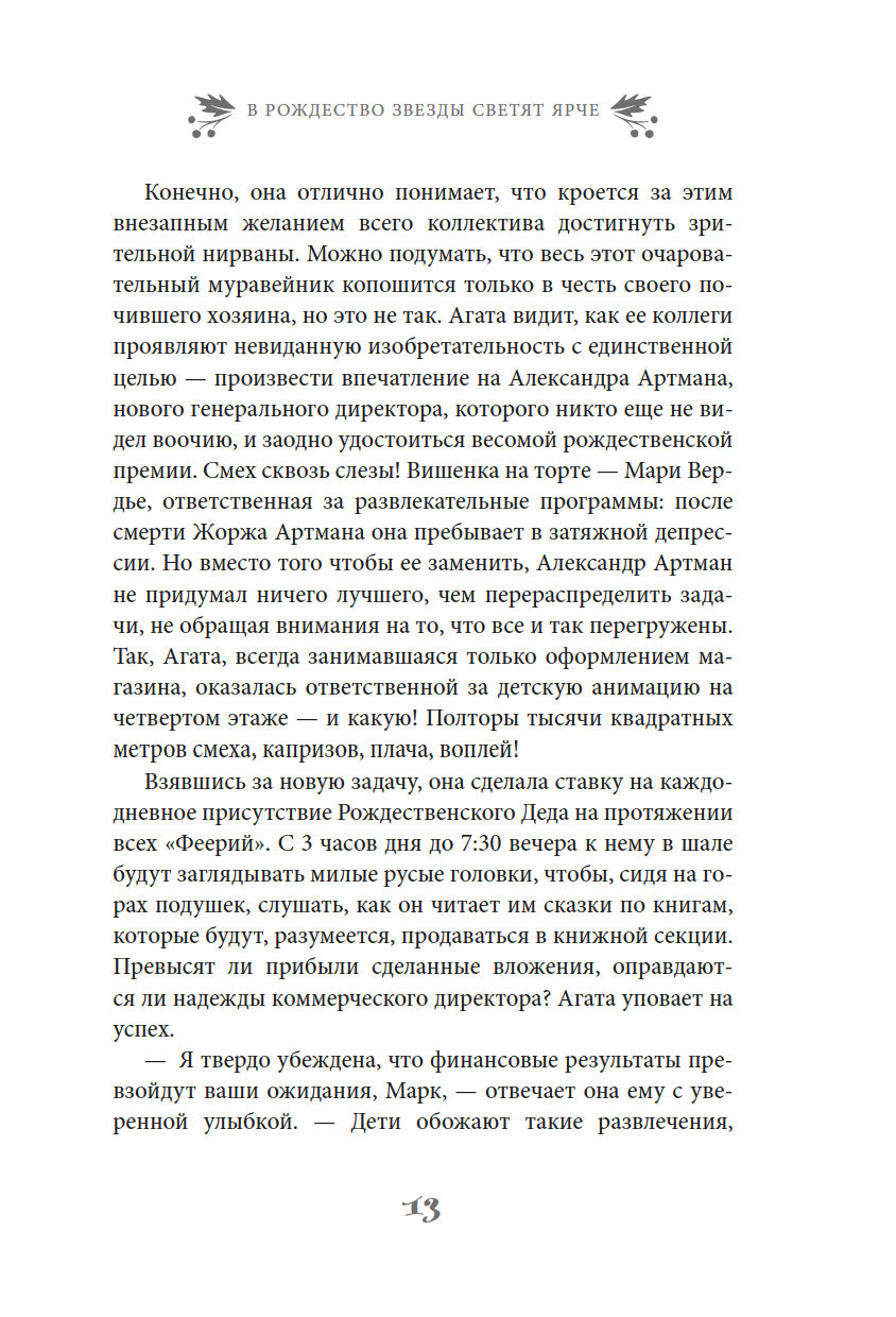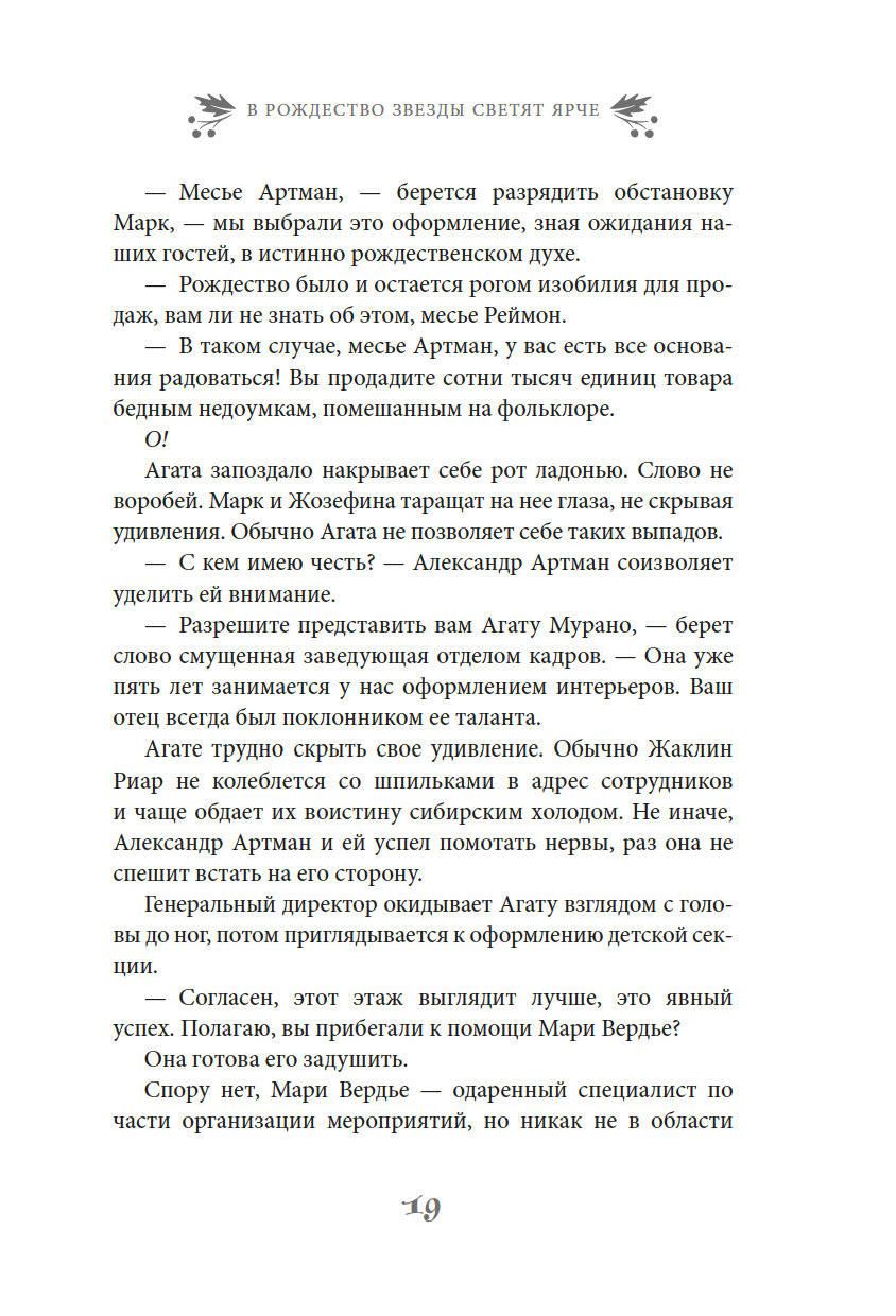 Ну ничего. Может, Александр и отдает распоряжения, зато никто не знает особенности праздничного сезона так, как Агата. Она уверена: ей еще удастся утереть ему нос. Главное, чтобы "Галерея Артман" пережила их противостояние… Ведь уже через неделю главные двери откроются сезону Рождества, и каждый гость обязан получить щедрую порцию праздничного настроения.