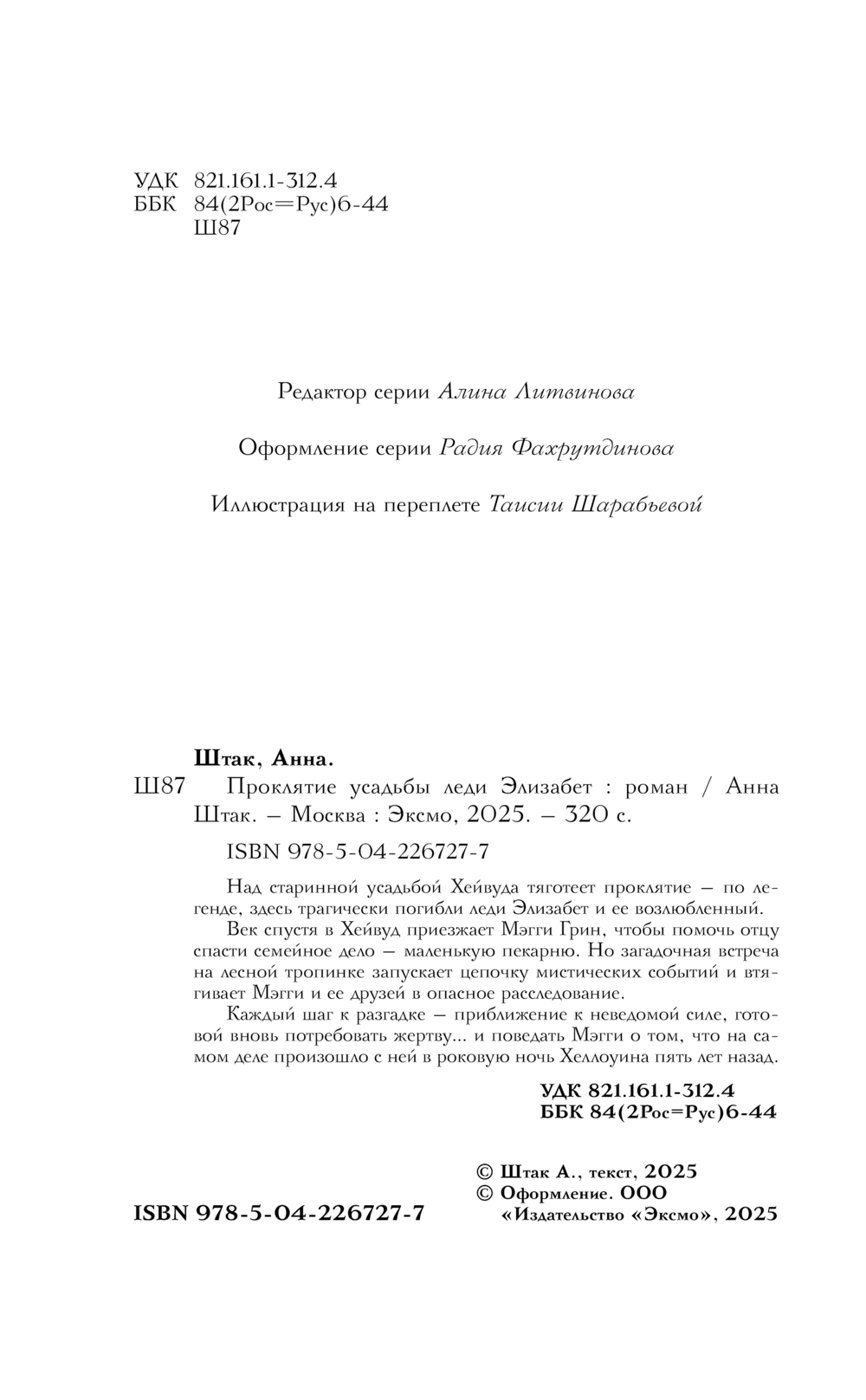 | Изготовитель | ООО «Издательство «Эксмо». РФ, г. Москва, ул. Клары Цеткин, 18, корп. 5 |