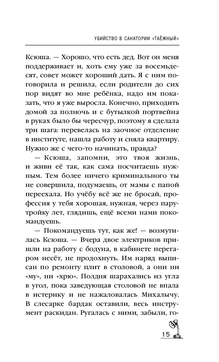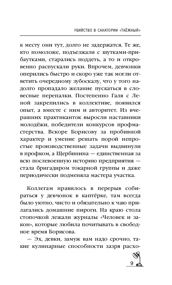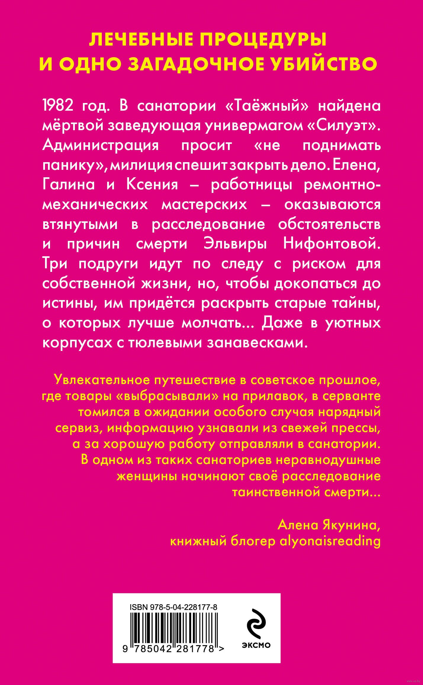 1982 год. В санатории "Таёжный" найдена мертвой заведующая универмагом "Силуэт". Администрация просит "не поднимать панику", милиция спешит закрыть дело. Елена, Галина и Ксения – работницы ремонтно-механических мастерских – оказываются втянутыми в расследование обстоятельств и причин смерти Эльвиры Нифонтовой. Три подруги идут по следу с риском для собственной жизни, но чтобы докопаться до истины, им придётся раскрыть старые тайны, о которых лучше молчать… Даже в уютных корпусах с тюлевыми занавесками.