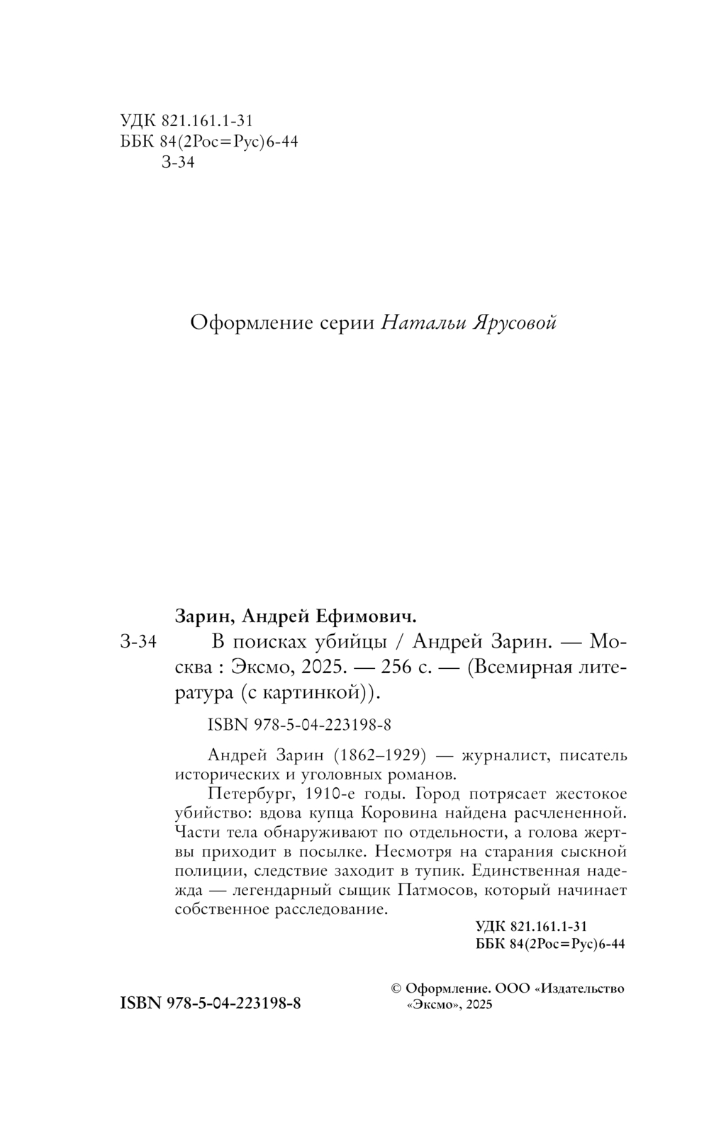 Андрей Зарин (1862–1929) – журналист, писатель исторических и уголовных романов.
