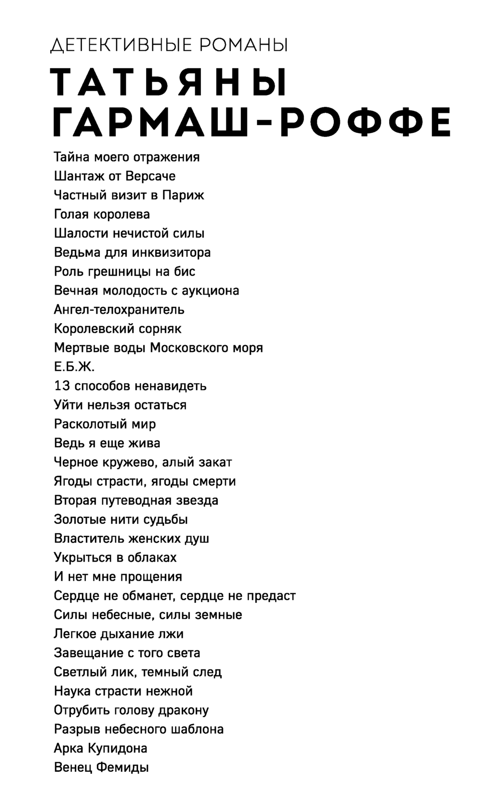 | Серия | Искусство детектива. Романы Т. Гармаш-Роффе |