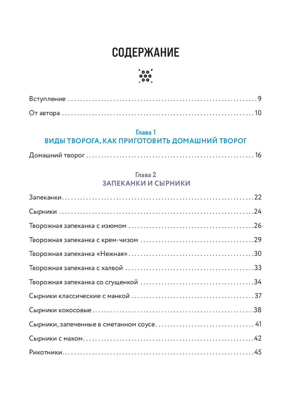 Писать о твороге и творожных блюдах для Екатерины Сардановской, автора двух вышедших ранее книг – "Вкусно, как у мамы" и "Тыквенная книга" – одно удовольствие, она обожает этот продукт. Он великолепен как в составе теста, так и в качестве начинок. Но ограничиваться лишь творогом она не стала, добавив в книгу рецепты с использованием творожных сыров, таких как кремчиз, маскарпоне и рикотта. В книге каждый найдет блюда, напоминающие те, что готовили их мамы и бабушки. Будь то ватрушки или сырники, ленивые вареники или запеканки. А может быть, налистники или оладьи! Праздничный стол тоже не останется без творожных угощений. Рождественский штоллен, пасхальный кулич, меренговый рулет для дня рождения или тирамису для чашечки кофе с друзьями, – все они и многие другие украсят ваш стол и принесут радость всей семье!