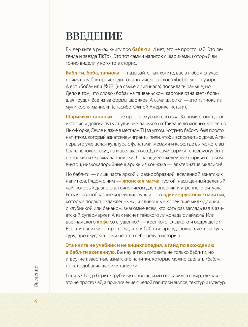 Эта книга – гайд по вхождению в бабл-ти вселенную для тех, кто хочет больше, чем просто чай или кофе. Культура, стиль и удовольствие в каждом глотке.