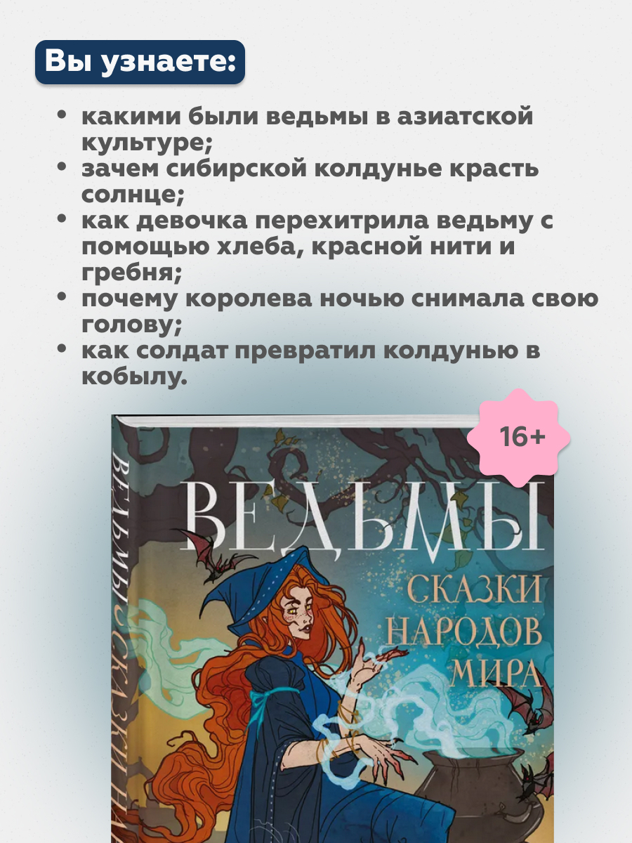 Слухи о ведьмах ходят в каждом уголке мира – от дремучих русских лесов до знойных африканских саванн. Люди веками страшатся их силы и одновременно обращаются к ним за помощью. В этом издании собраны уникальные сказки самых разных народов, повествующие о колдуньях – похитительницах детей, шаманках и даже оборотнях.