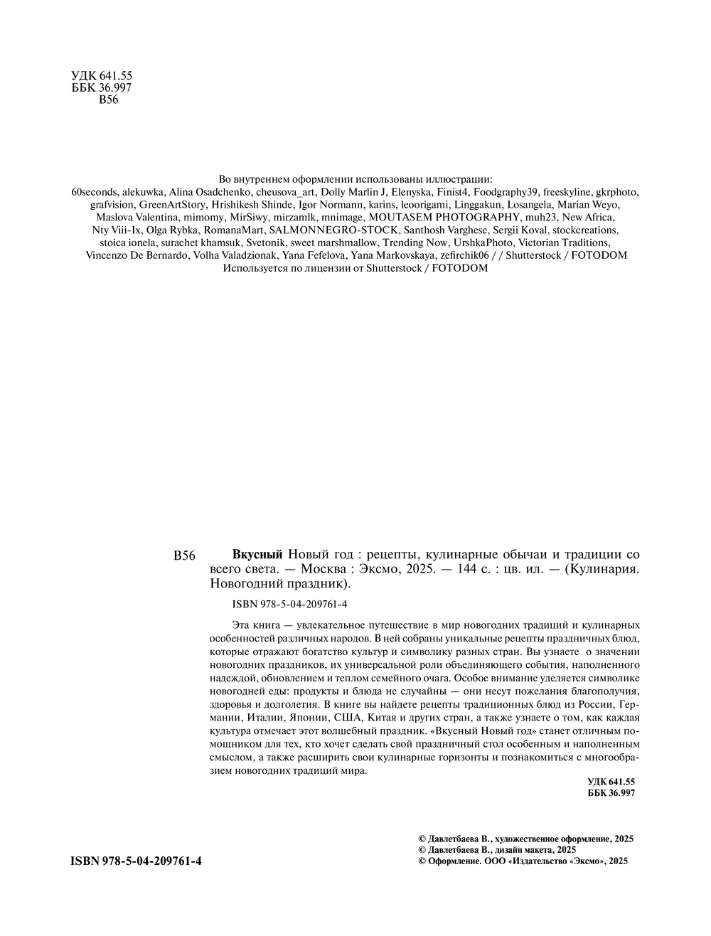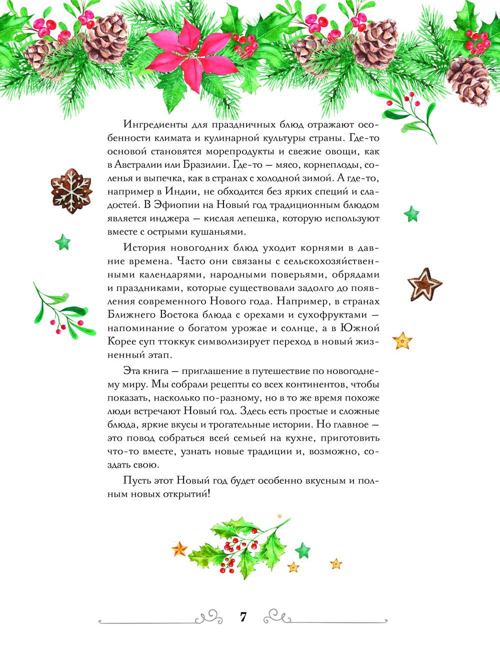 Эта книга – увлекательное путешествие в мир новогодних традиций и кулинарных особенностей различных народов. В ней собраны уникальные рецепты праздничных блюд, которые отражают богатство культур и символику разных стран. Вы узнаете о значении новогодних праздников их универсальной роли объединяющего события, наполненного надеждой, обновлением и теплом семейного очага. Особое внимание уделяется символике новогодней еды: продукты и блюда не случайны – они несут пожелания благополучия, здоровья и долголетия.