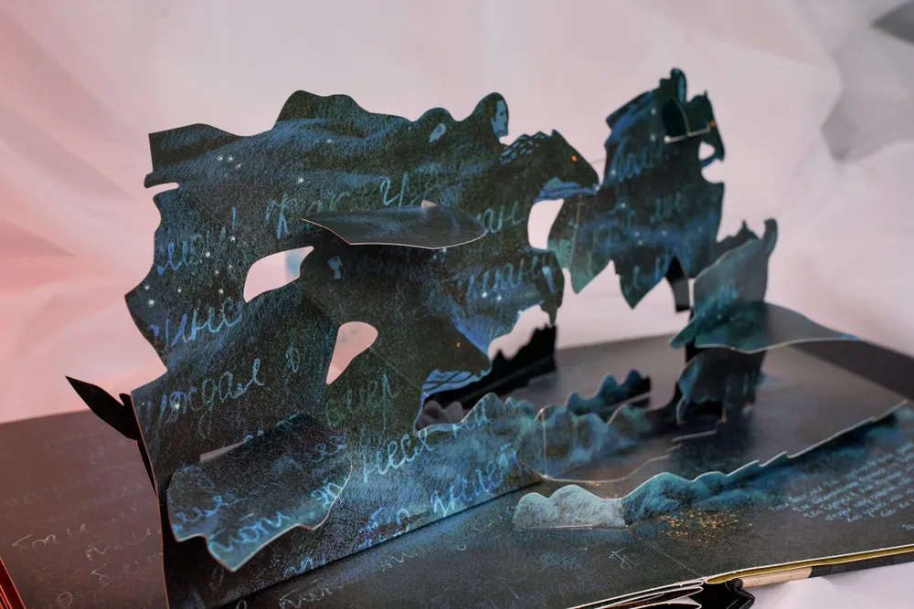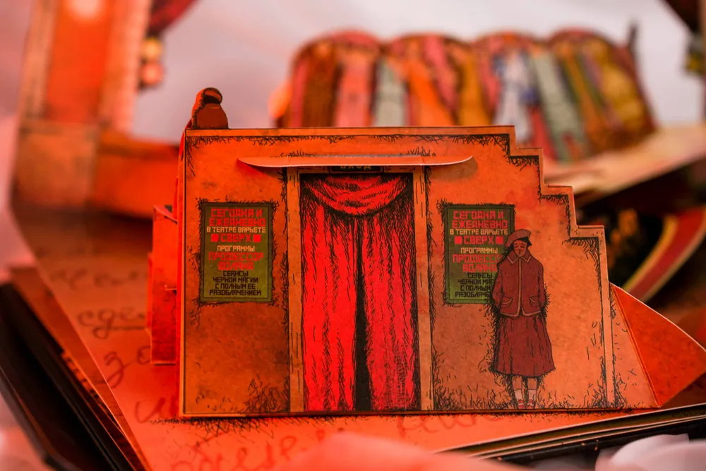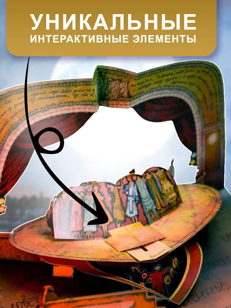 Это издание – не просто книга, а настоящий арт-объект, призванный подарить незабываемые впечатления. Вас ждут 8 масштабных объемных разворотов, которые перенесут вас в сердце ключевых событий романа: вы станете свидетелем загадочного сеанса в Варьете, окажетесь на Патриарших прудах и на балу у Сатаны. Каждая сцена – это сложная бумажная инженерия Екатерины Казейкиной и новый взгляд на вечные образы в иллюстрациях Алексея Дмитриева.