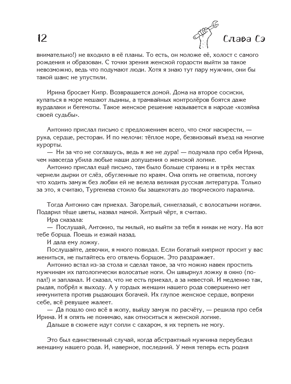 Слава Сэ – мастер превращать бытовые мелочи в большой праздник слов и смеха. В этом издании все истории о сантехнике, его семье, котах, дворовых философах и бытовых катастрофах, которые внезапно оказываются поводом для нежности, остроумия и житейской мудрости.