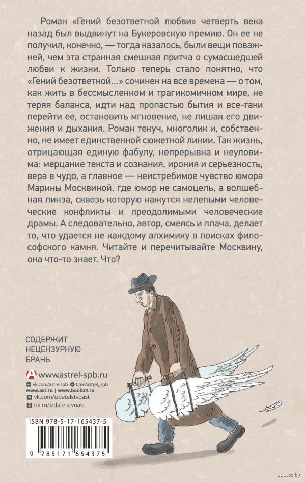 Роман "Гений безответной любви" четверть века назад был выдвинут на Букеровскую премию. Он ее не получил, конечно, – тогда казалось, были вещи поважней, чем эта странная смешная притча о сумасшедшей любви к жизни. Только теперь стало понятно, что "Гений безответной…" сочинен на все времена – о том, как жить в бессмысленном и трагикомичном мире, не теряя баланса, идти над пропастью бытия и все-таки перейти ее, остановить мгновение, не лишая его движения и дыхания. Роман текуч, многолик и, собственно, не имеет единственной сюжетной линии.