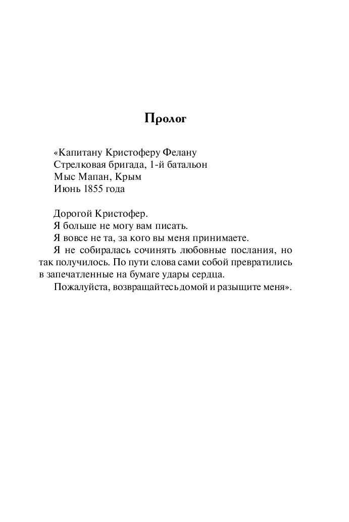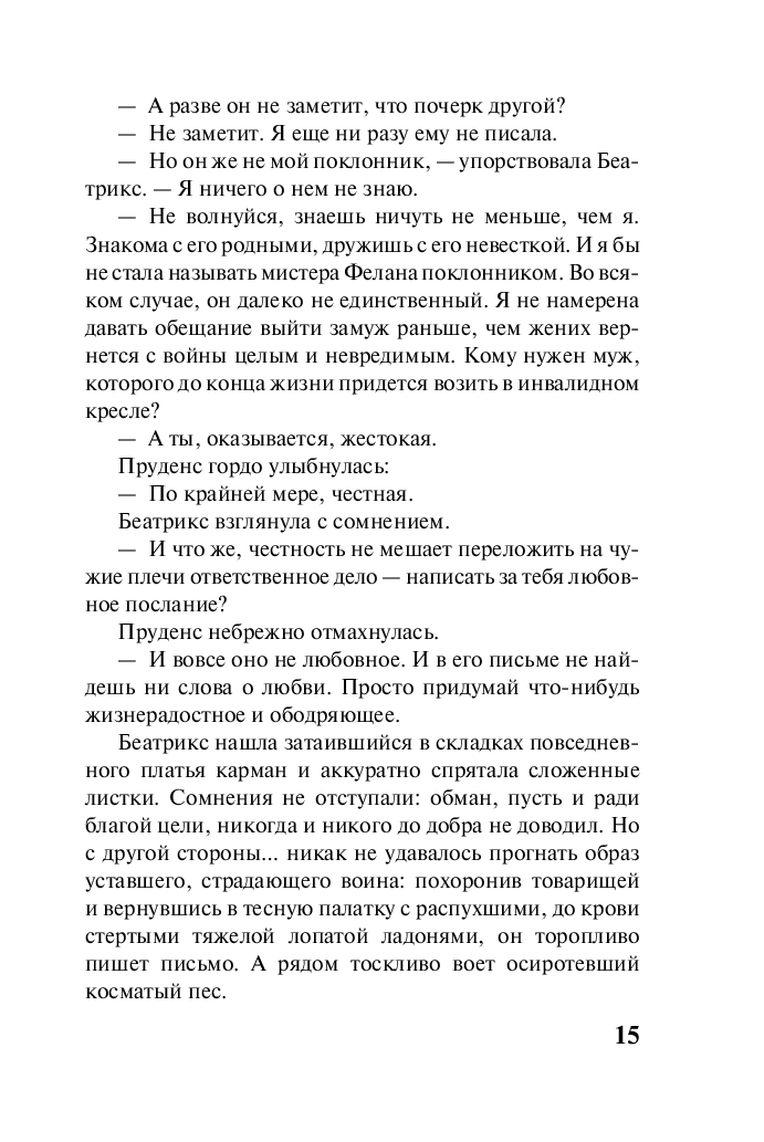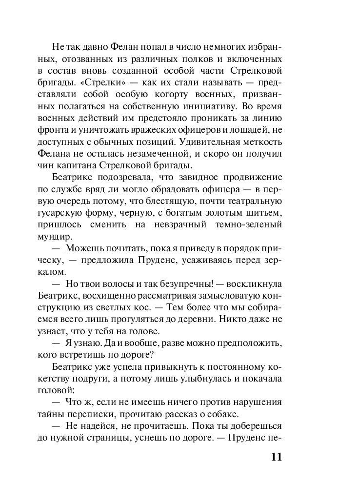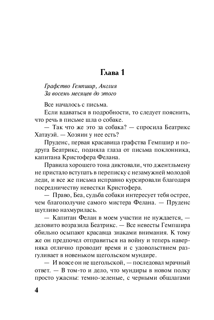Беатрикс Хатауэй уже смирилась с судьбой безнадежной старой девы – никакая красота не поможет эксцентричной чудачке, предпочитающей светской жизни прогулки по лесам и заботу о животных. Однако все меняется, когда Беатрикс под видом своей легкомысленной подружки Пруденс Мерсер начинает переписку с ее женихом – капитаном Кристофером Феланом, оказавшимся на далекой и жестокой войне.