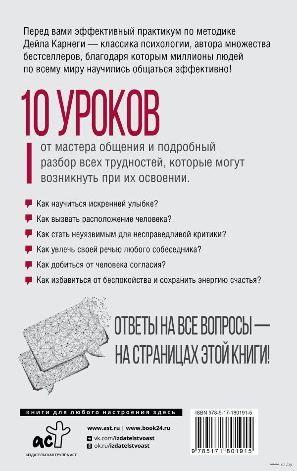 Часть текстов, использованных в этой книге, издавалась в книгах "Весь Карнеги: шпаргалки, формулы, подсказки и упражнения" и "Карнеги. Все секреты общения в одной книге". Данное издание – расширенная дополненная версия этих книг.