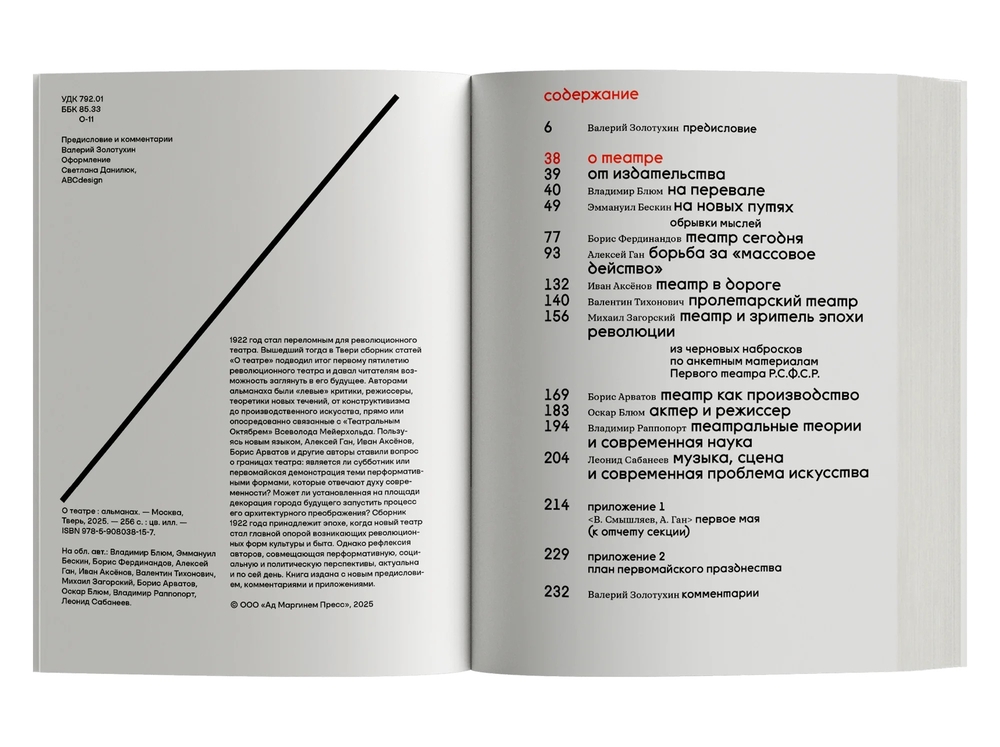 Сборник 1922 года принадлежит эпохе, когда новый театр стал главной опорой возникающих революционных форм культуры и быта. Однако рефлексия авторов, совмещающая перформативную, социальную и политическую перспективы, актуальна и по сей день. Книга издана с новым предисловием, комментариями и приложениями.