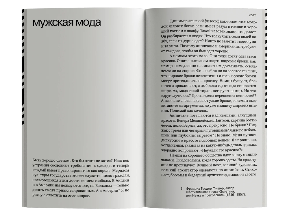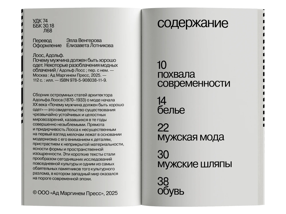 Сборник остроумных статей архитектора Адольфа Лооса (1870–1933) о моде начала XX века "Почему мужчина должен быть хорошо одет" – это свидетельство существования чрезвычайно устойчивых и целостных мировоззрений, казавшихся в те годы совершенно незыблемыми.