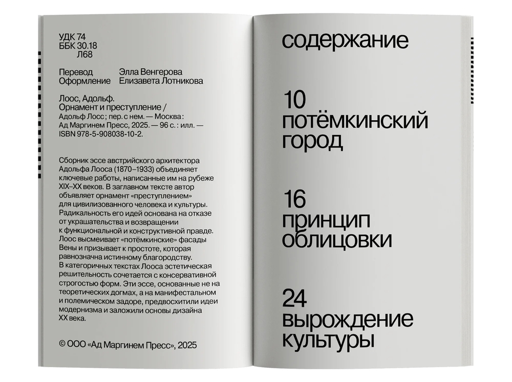Сборник эссе австрийского архитектора Адольфа Лооса (1870–1933) объединяет ключевые работы, написанные им на рубеже XIX–XX веков.