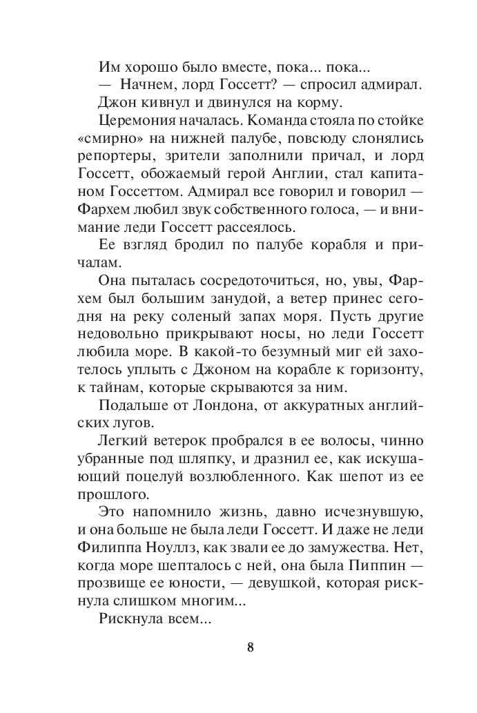 Однажды юная Филиппа Ноуллз по прозвищу Пиппин спасла от гибели капитана Томаса Дэшуэлла, а он своим поцелуем похитил ее сердце. Прошли годы, Пиппин вышла замуж, затем овдовела и превратилась в строгую и надменную леди Госсетт. По воле судьбы она вновь встречается с Дэшуэллом – увы, сломленным, усталым, озлобленным и ищущим покоя на дне бутылки. Сможет ли Пиппин спасти его вновь? Захочет ли? Скандальное красное платье, когда-то поразившее смелого капитана, все еще хранится в ее гардеробе... Но жива ли память о его поцелуе в ее душе?