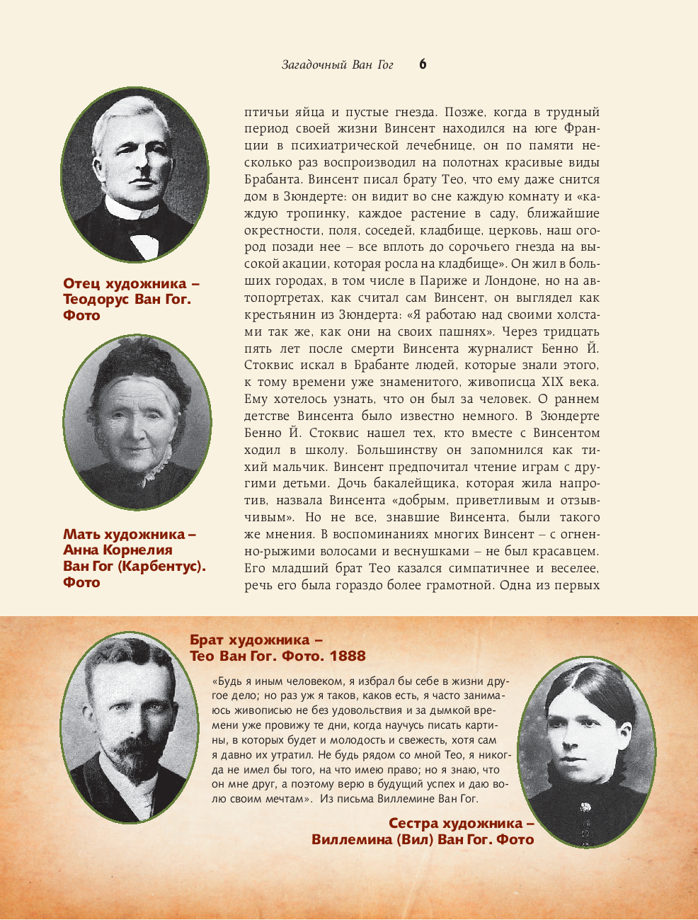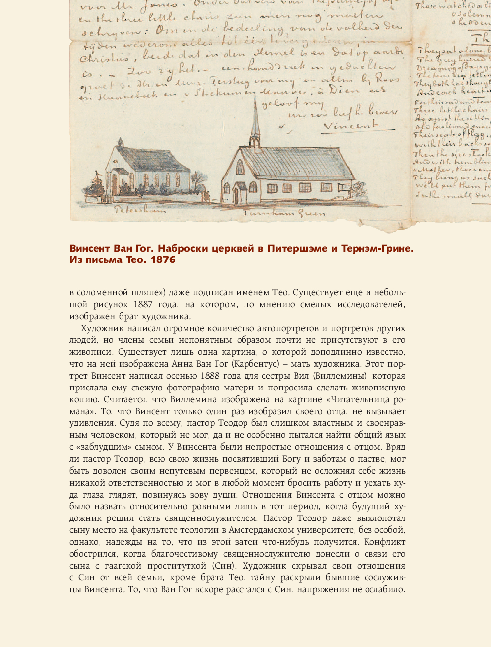 Винсент Ван Гог – это имя сегодня известно почти каждому любителю живописи. Гениальный живописец со своим неповторимым стилем, человек сложной трагической судьбы. Художник-самоучка, которому было отмерено только 7 лет творчества, в течение которых он создал более потрясающих 800 картин и 1000 рисунков.Эпистолярное наследие Винсента Ван Гога включает в себя более семисот писем, которые открывают нам правду о жизни художника, чье искусство оставалось безвестным при его жизни и признано бесценным в наши дни. О жизни художника до сих пор ходит много легенд. Так и не познав успеха при жизни, он умер в полном забвении, оставив нам множество загадок, а уже в XXI веке его творческое наследие обрело фантастический успех.