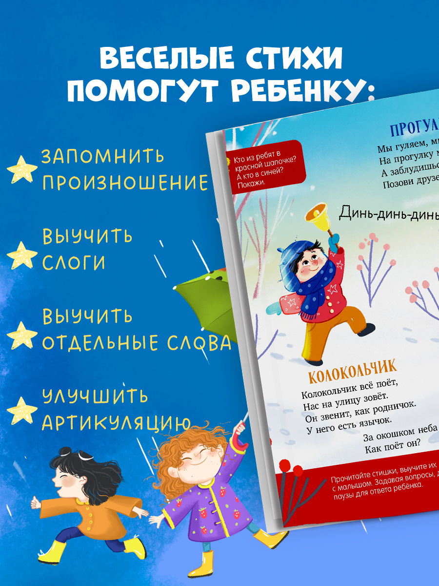 Веселые стихи-болтушки этой Clever книги помогут ребенку запомнить произношение слов, выучить слоги и даже отдельные слова, так что запуск речи пройдет легко и весело!