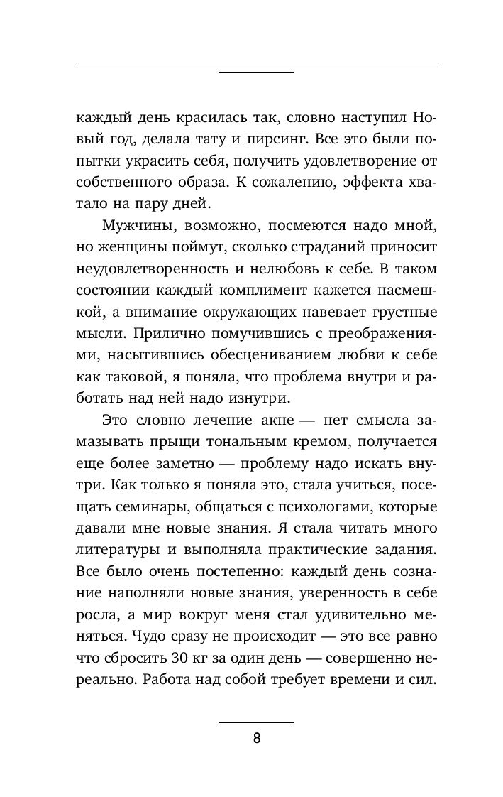 Эта книга, основанная на многолетнем опыте консультирования, – ваш шанс начать преображаться изнутри, научиться заботиться о себе с истинной любовью и, наконец, взглянуть в зеркало с трепетом и восхищением.