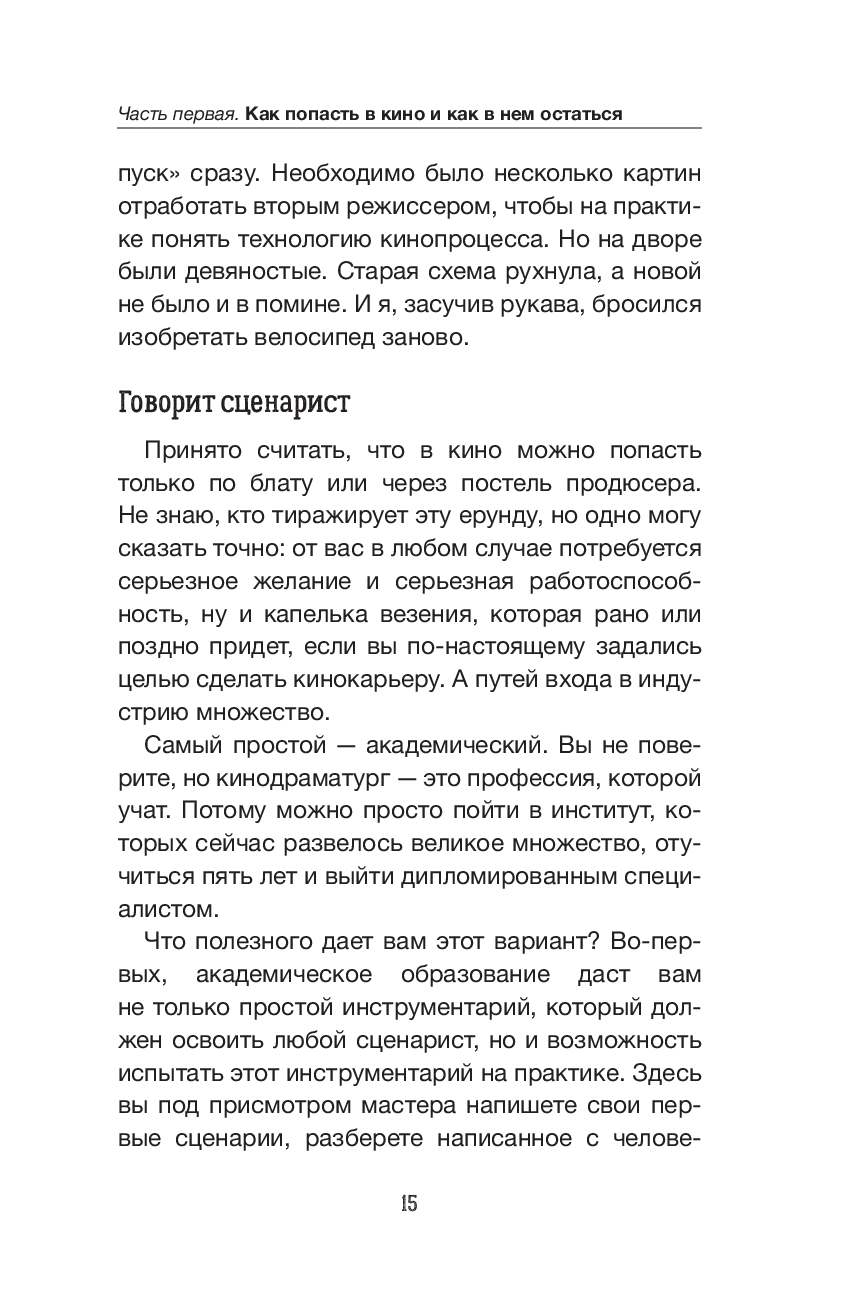 Книга полна реальных историй, полезных советов и честных размышлений о мире кино. Подойдет начинающим авторам, режиссерам и всем, кто хочет заглянуть за кулисы кинематографа.