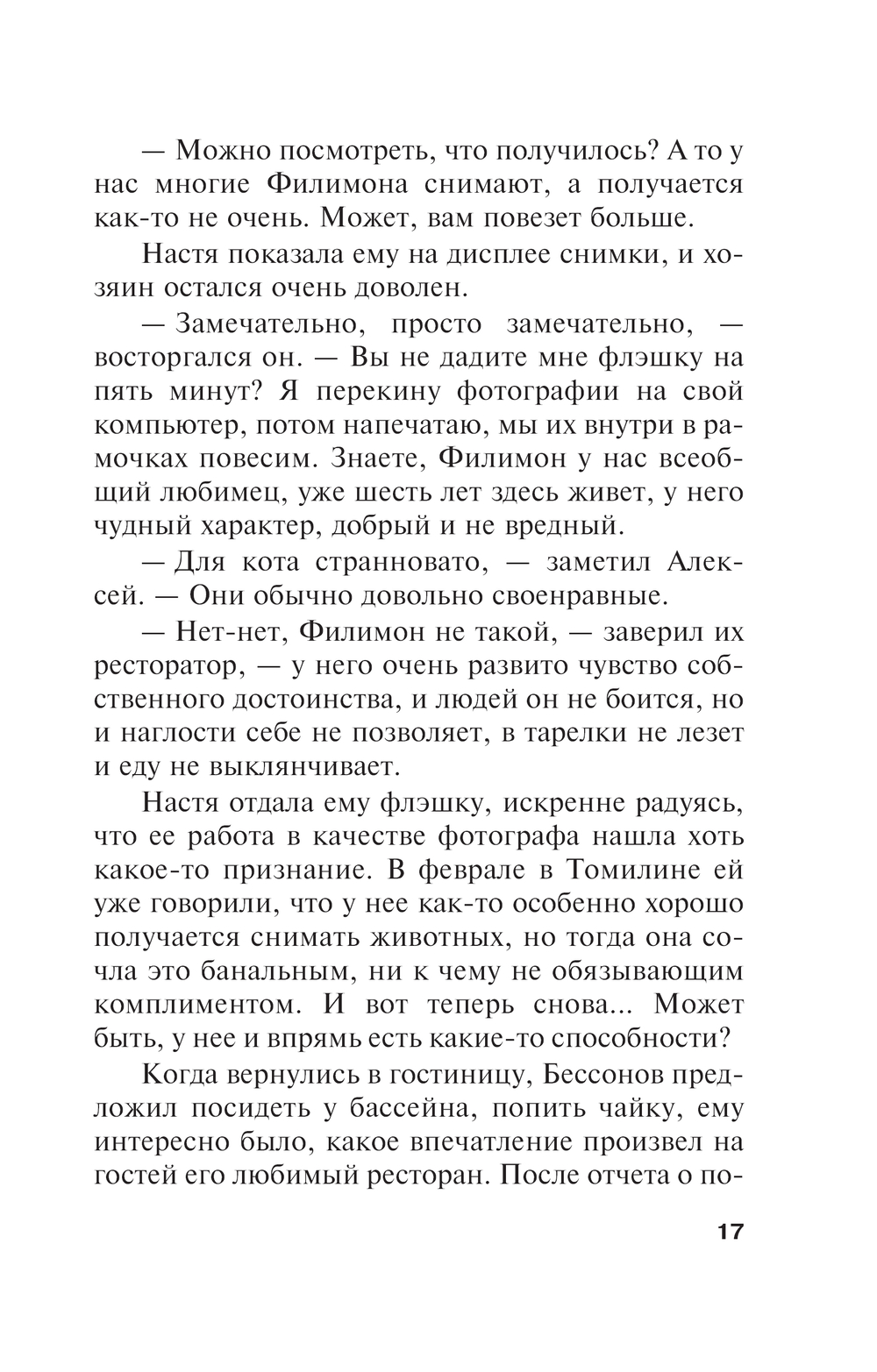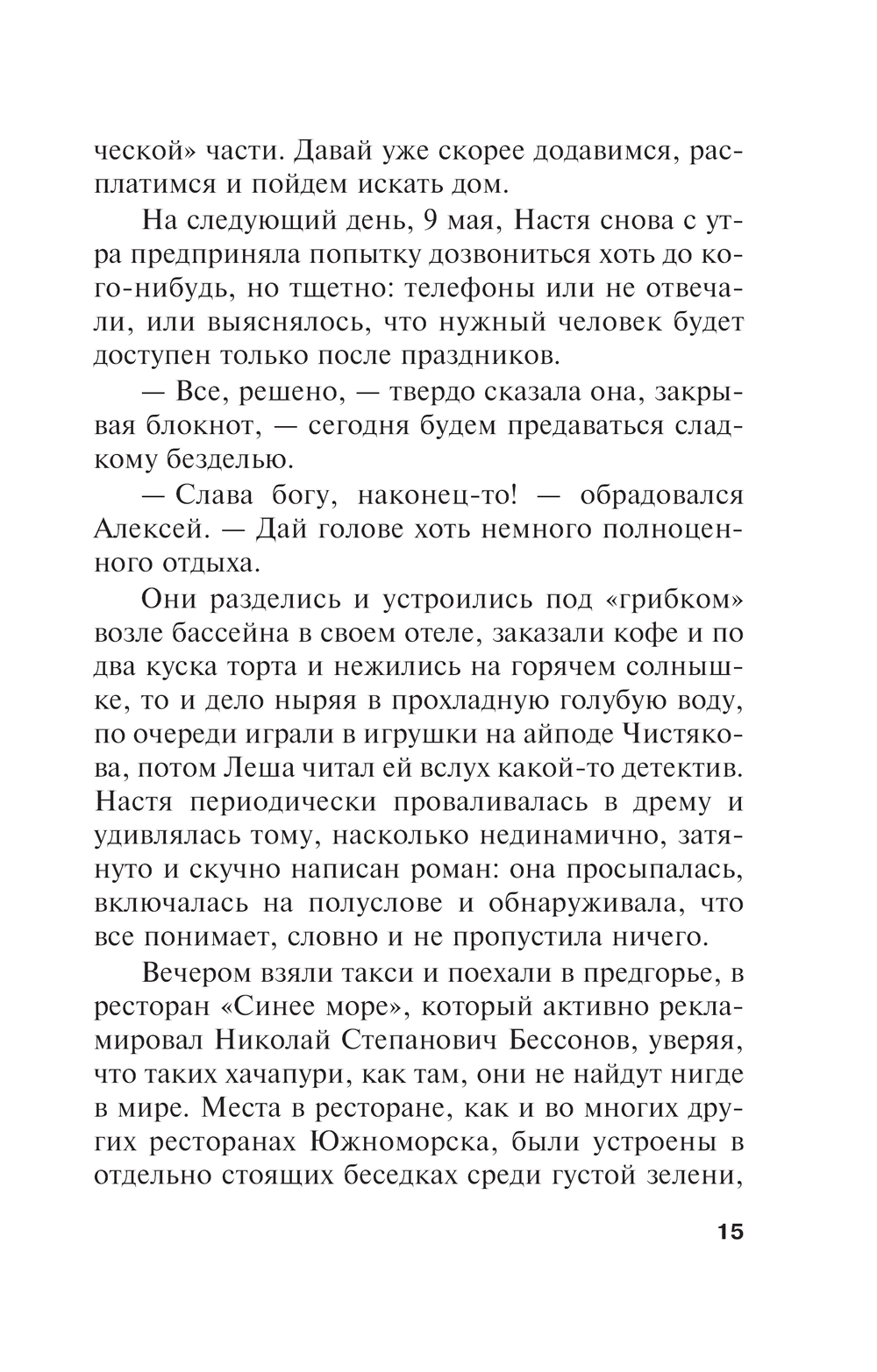 Прошлое неотрывно смотрит в будущее. Чтобы разобраться в сегодняшнем дне, надо обернуться назад. А преступление, которое расследует частный детектив Анастасия Каменская, своими корнями явно уходит в прошлое. Кто-то убил смертельно больного, беспомощного хирурга Евтеева, давно оставившего врачебную практику. Значит, была какая-та опасная тайна в прошлом этого врача, и месть настигла его на пороге смерти. Месть? Впрочем, зачастую под маской мести прячется элементарное желание что-то исправить, улучшить в своей жизни. А фигурантов этого дела обуревает множество страстных желаний: жажда власти, богатства, удовлетворения самых причудливых амбиций… Словом, та самая, столь хорошо знакомая Насте, благодатная почва для совершения рискованных и опрометчивых поступков. Но ведь где-то в прошлом таится то самое роковое событие, вызвавшее эту лавину убийств, шантажа, предательств. Надо как можно быстрее вычислить его и остановить весь этот ужас…
