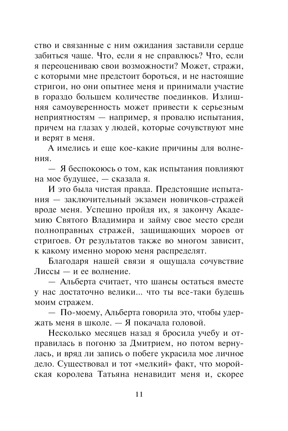 Позади выпускные испытания в Академии вампиров, и неукротимая Роза Хэзевей получает наконец официальное звание стража. Целый мир открыт перед ней отныне, но первое, что делают Роза и ее подруга принцесса Лисса после прибытия к королевскому двору – организуют побег из тюрьмы Виктора Дашкова, одного из самых опасных преступников вампирского мира.