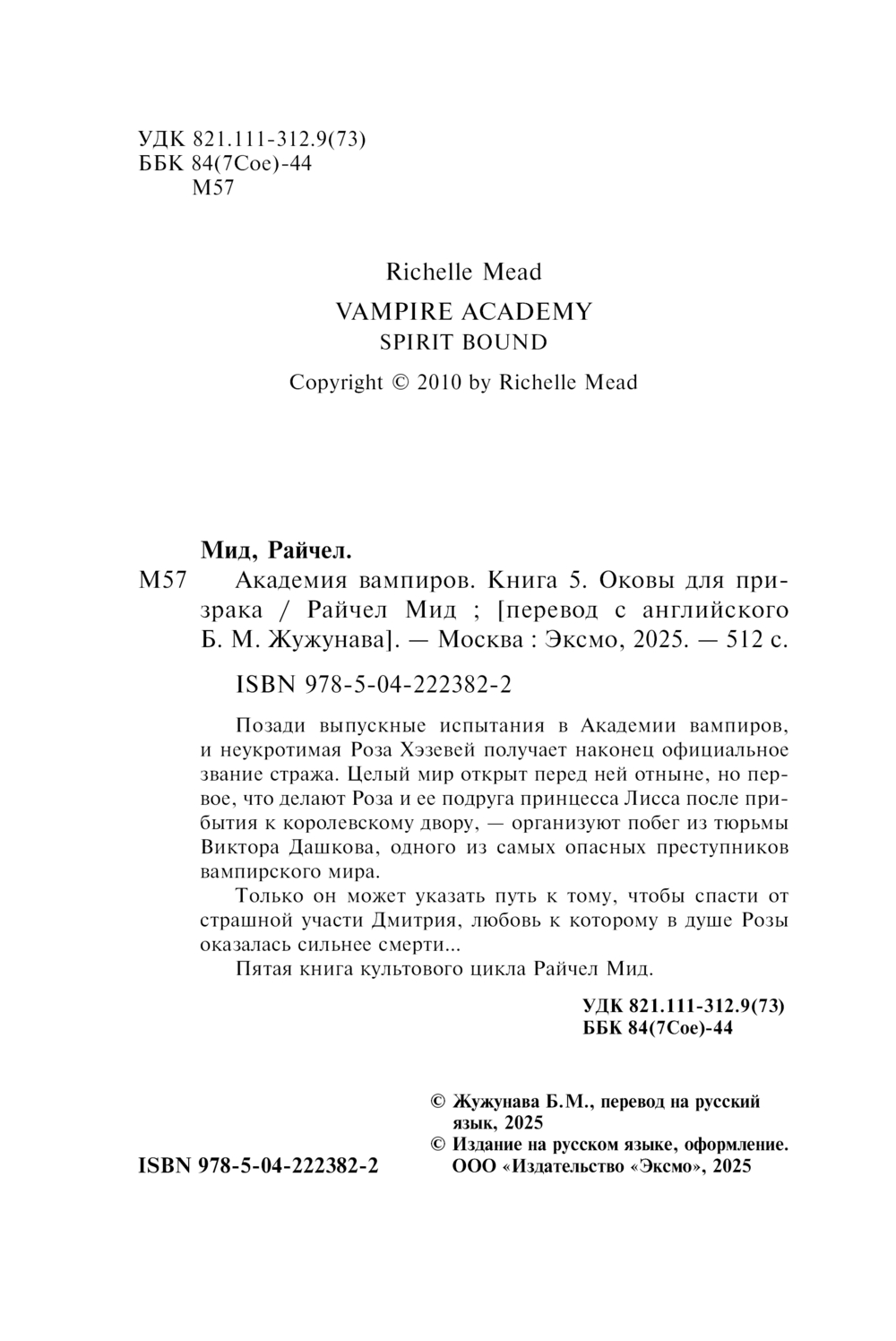 | Название в оригинале | Vampire Academy (Book 5) (Spirit Bound) |