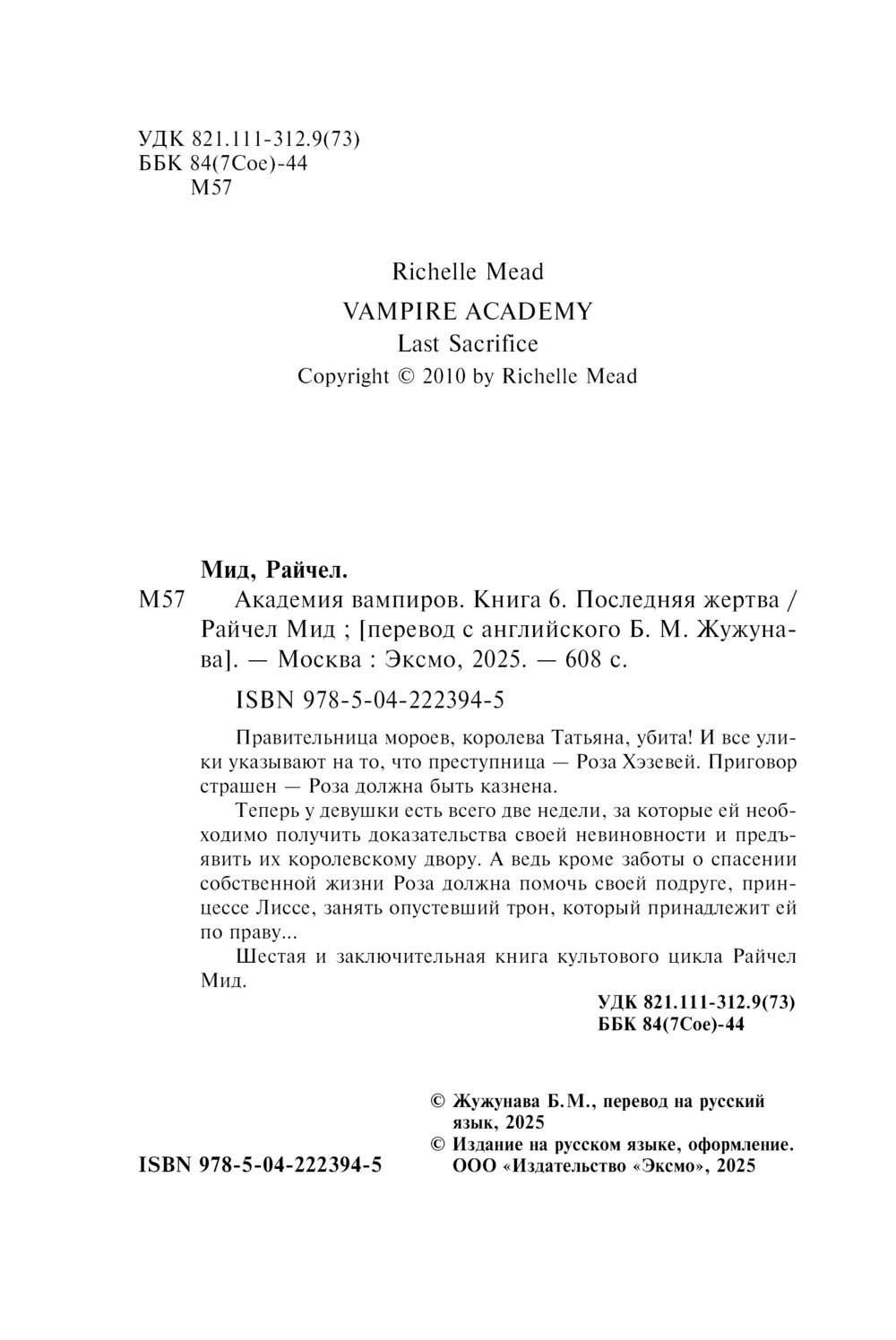 | Название в оригинале | Vampire Academy (Book 6) (Last Sacrifice) |