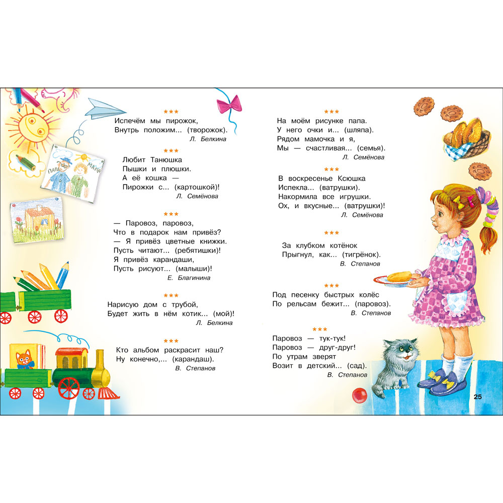 В книгу вошли стихи любимых детских поэтов Владимира Степанова, Татьяны Коваль, Елены Благининой, Эммы Мошковской, Ольги Высотской и многих других.