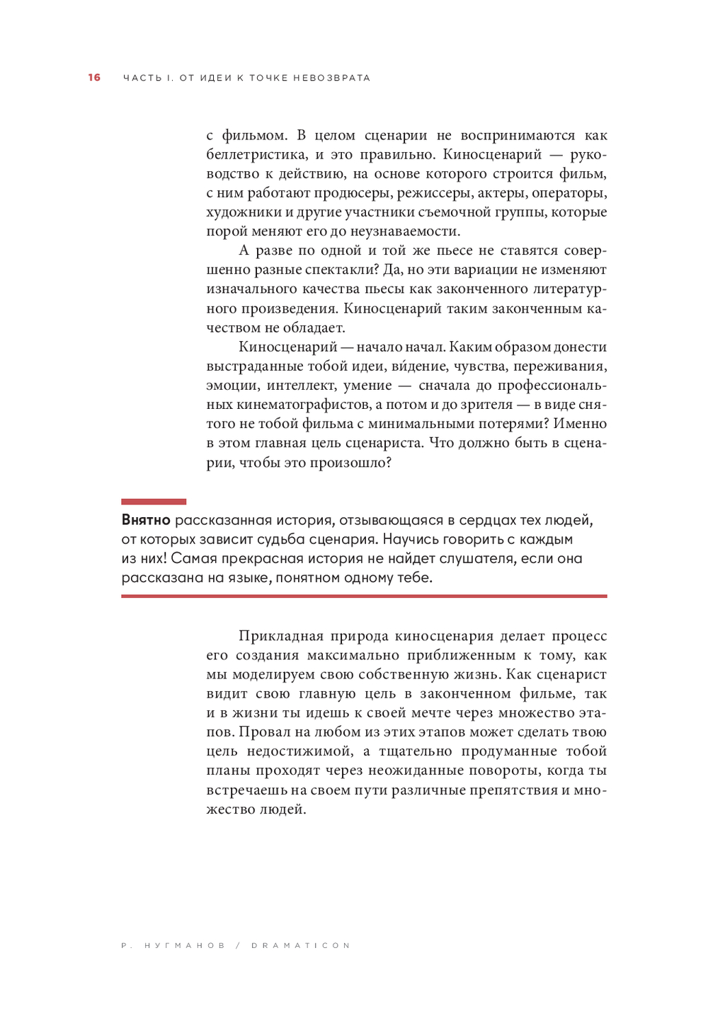 Для профессионалов Dramaticon – это пошаговое руководство по созданию сценария от идеи до финального драфта. Автор не только учит правильно структурировать сюжет и придумывать убедительных персонажей, но и объясняет, где черпать вдохновение, как удерживать зрительское внимание и создавать сильные концовки – и как собрать из слов мир, в который захочется окунуться. Используя предложенные методы, вы научитесь писать технически совершенные и глубоко резонирующие со зрителем сценарии.