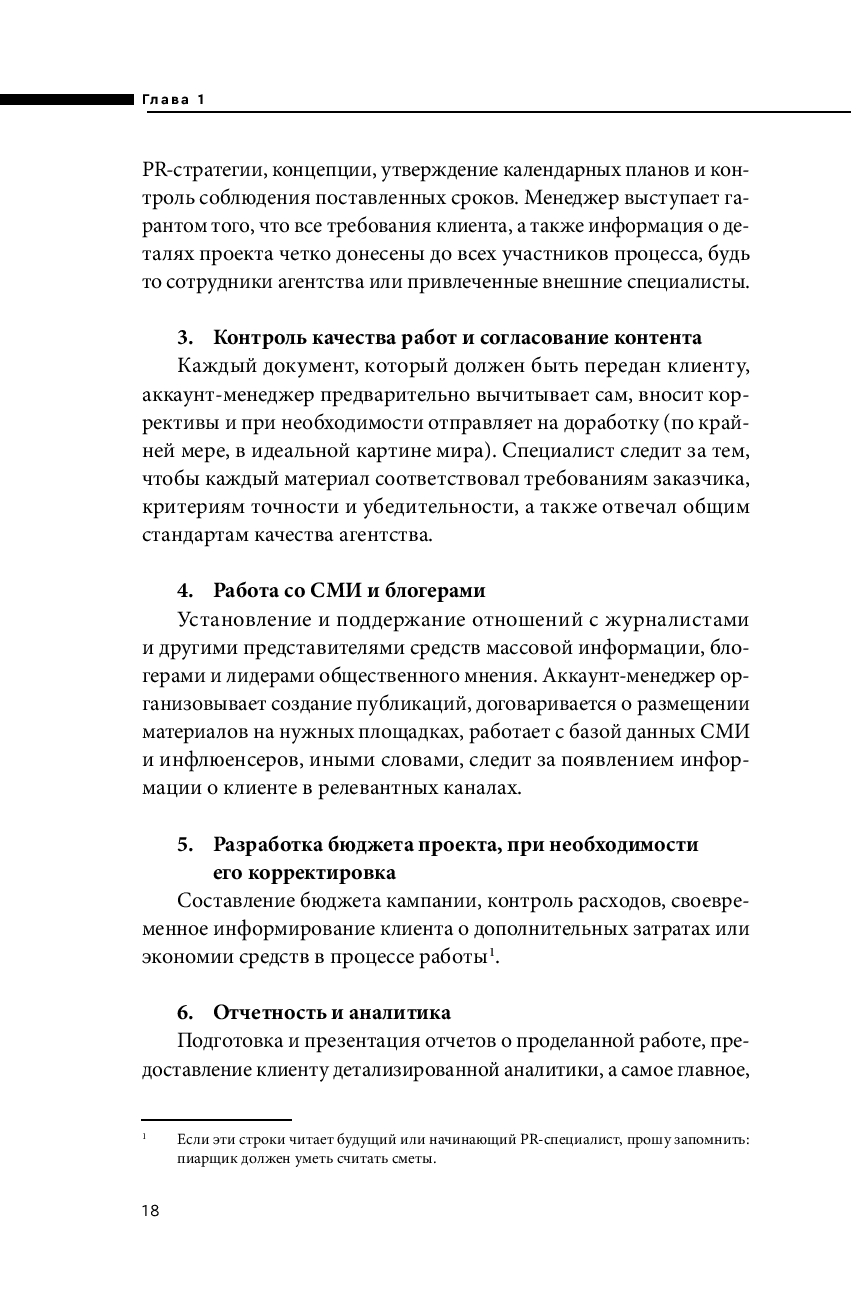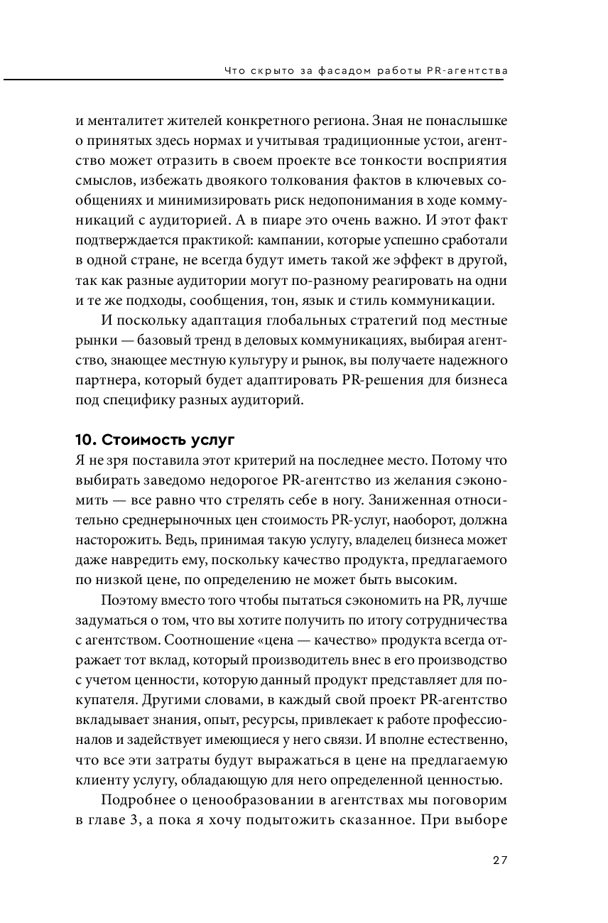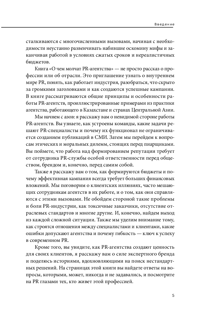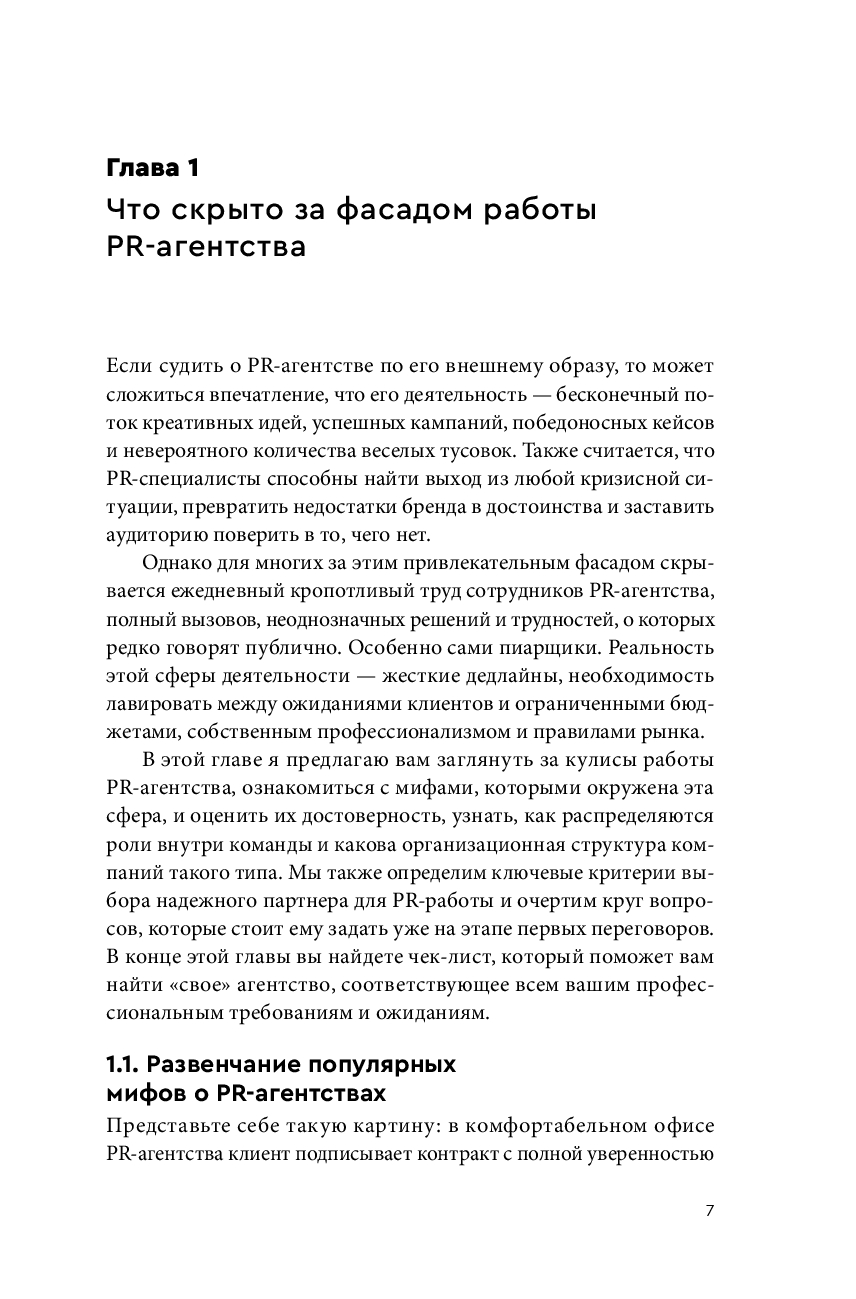Если вы PR-специалист, то эта книга тоже для вас. Вы живете своей профессией – знаете, что за фасадом светских мероприятий и красивых релизов скрываются бесконечные переговоры, работа в перманентном стрессе, клиенты с завышенными ожиданиями и каждодневные этические дилеммы. Вы осведомлены о внутренних проблемах индустрии: выгорании, текучести кадров, бессмысленных тендерах, необходимости постоянно доказывать свою значимость в мире, где честность и качественный труд зачастую недооценивают. Вы хотите расти, становиться настоящим экспертом, уметь справляться с самыми сложными задачами и строить карьеру на принципах профессионализма и прозрачности. Вас больше не устраивает просто "делать PR" – вы хотите научиться управлять коммуникациями, добиваться признания и чувствовать уверенность.
