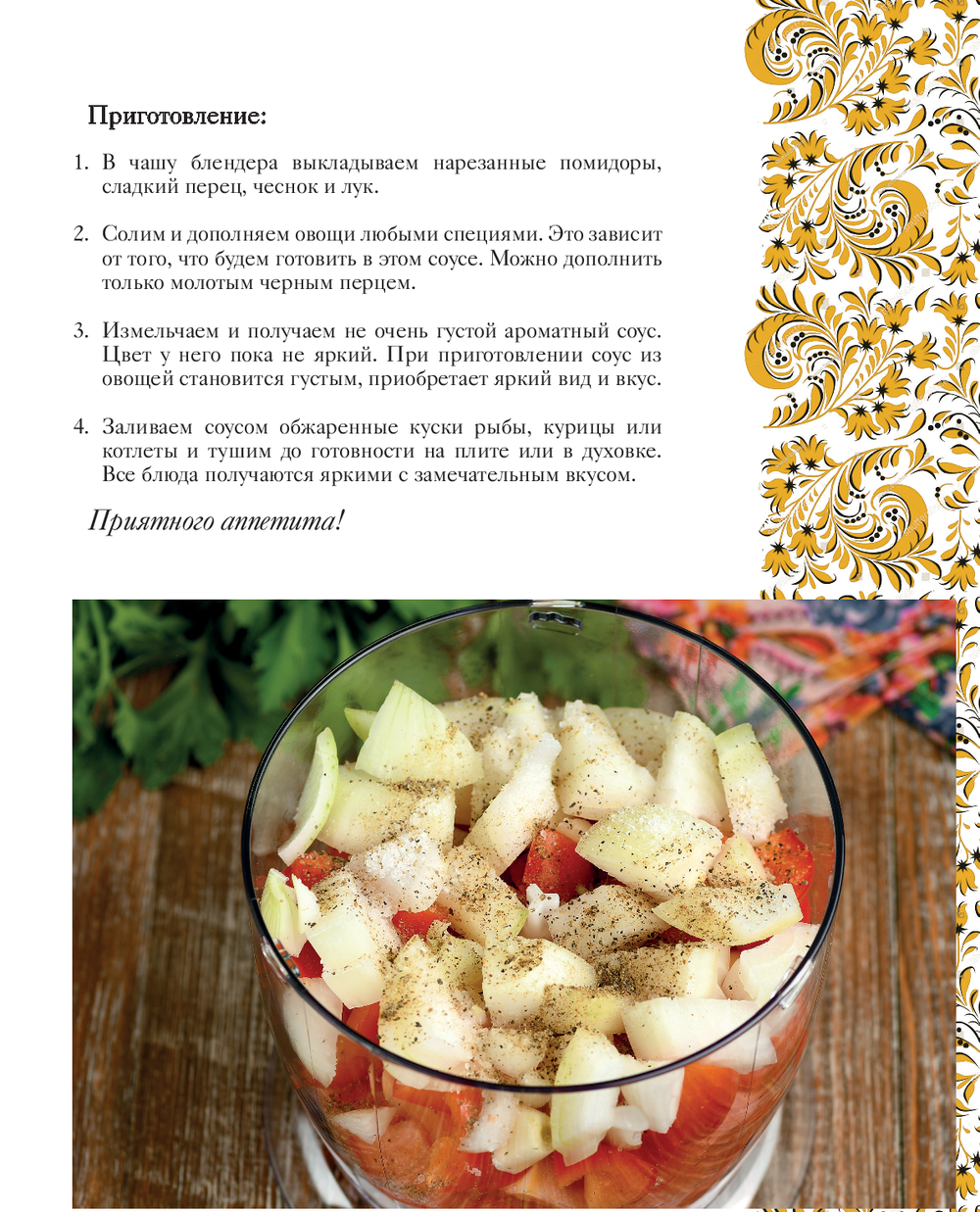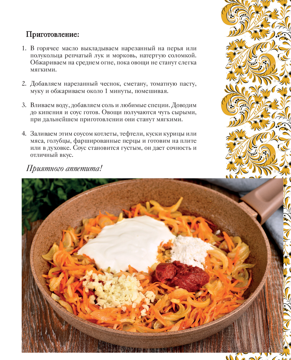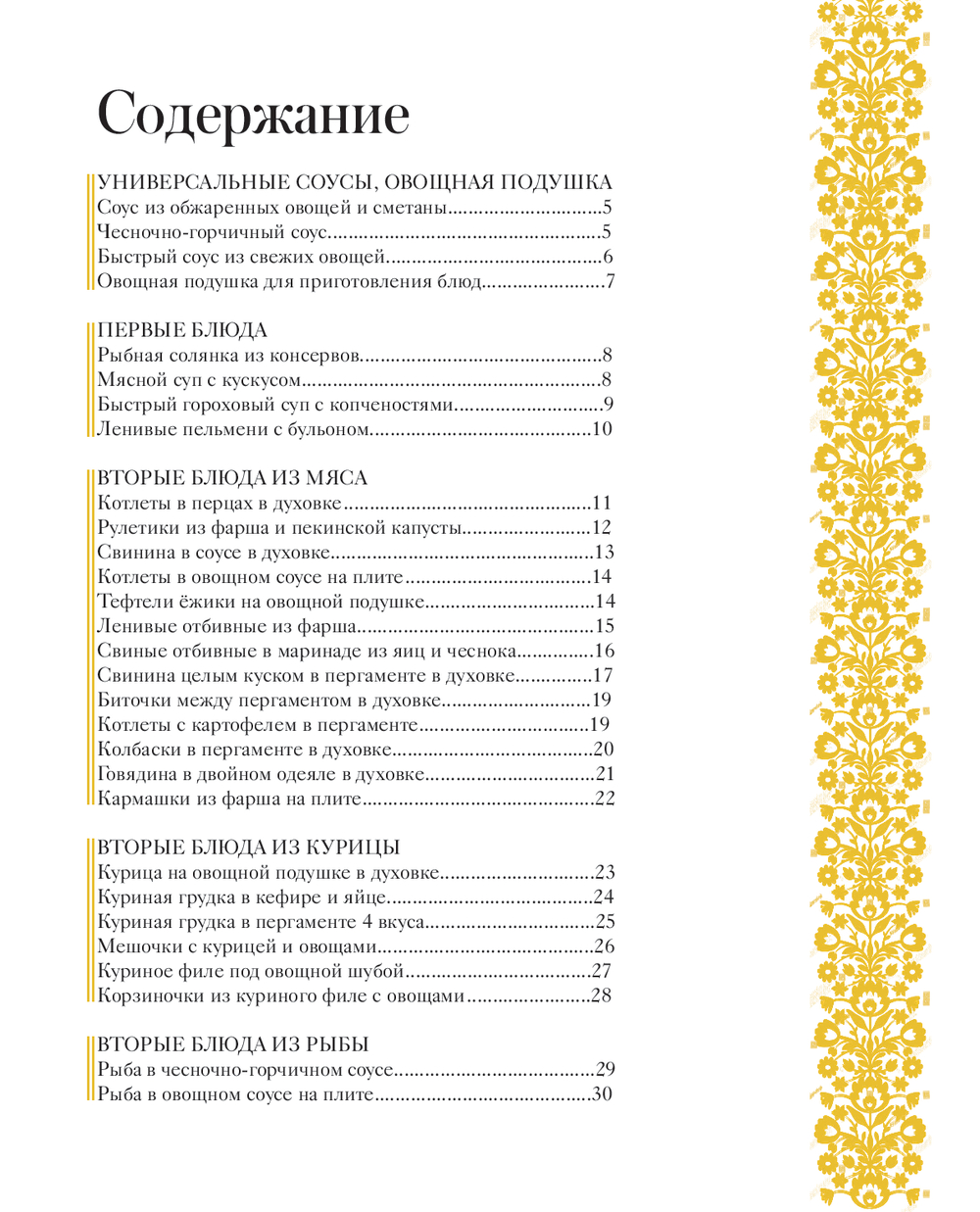 Здесь вы найдете всё, чтобы порадовать себя и близких: от универсальных соусов и ароматной овощной подушки до сытных первых блюд, разнообразных вторых блюд из мяса, птицы и рыбы, а также легких яичных, овощных и крупяных вариаций. Не обойдем стороной и быстрые салаты, аппетитные закуски, а также воздушную выпечку и нежные блины. С этой книгой готовить станет легко, вкусно и вдохновляюще!