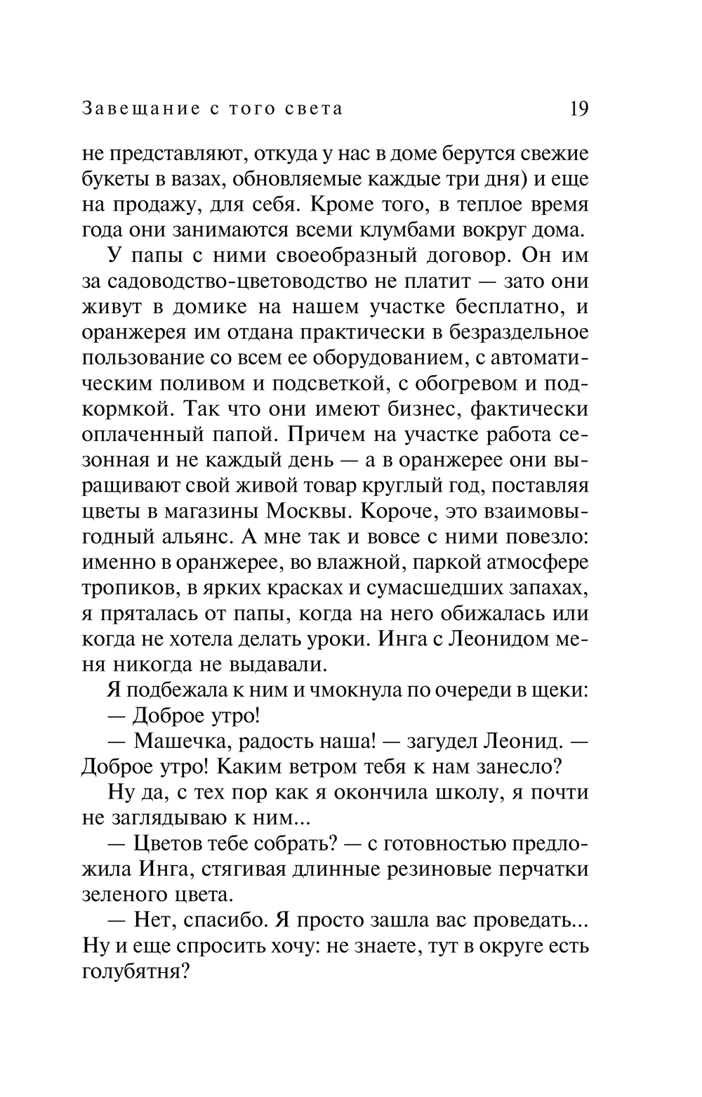 Маша обращается к сыщику Алексею Кисанову. Он в мистику не верит, считая "голубиное письмо" жестоким розыгрышем, но все же берется за дело из сочувствия к девушке. Ему помогает ассистент Игорь, у которого Маша вызывает больше, чем простое сочувствие... Беседа с близкими академика неожиданно приподнимает завесу над неприглядными тайнами "Заповедника". Похоже, Донников стал жертвой интриг своих высокопоставленных пациентов... Расследование принимает опасный оборот: теперь кто-то покушается на жизнь Маши. Кто? Кому нужна смерть академика и его дочери?!
