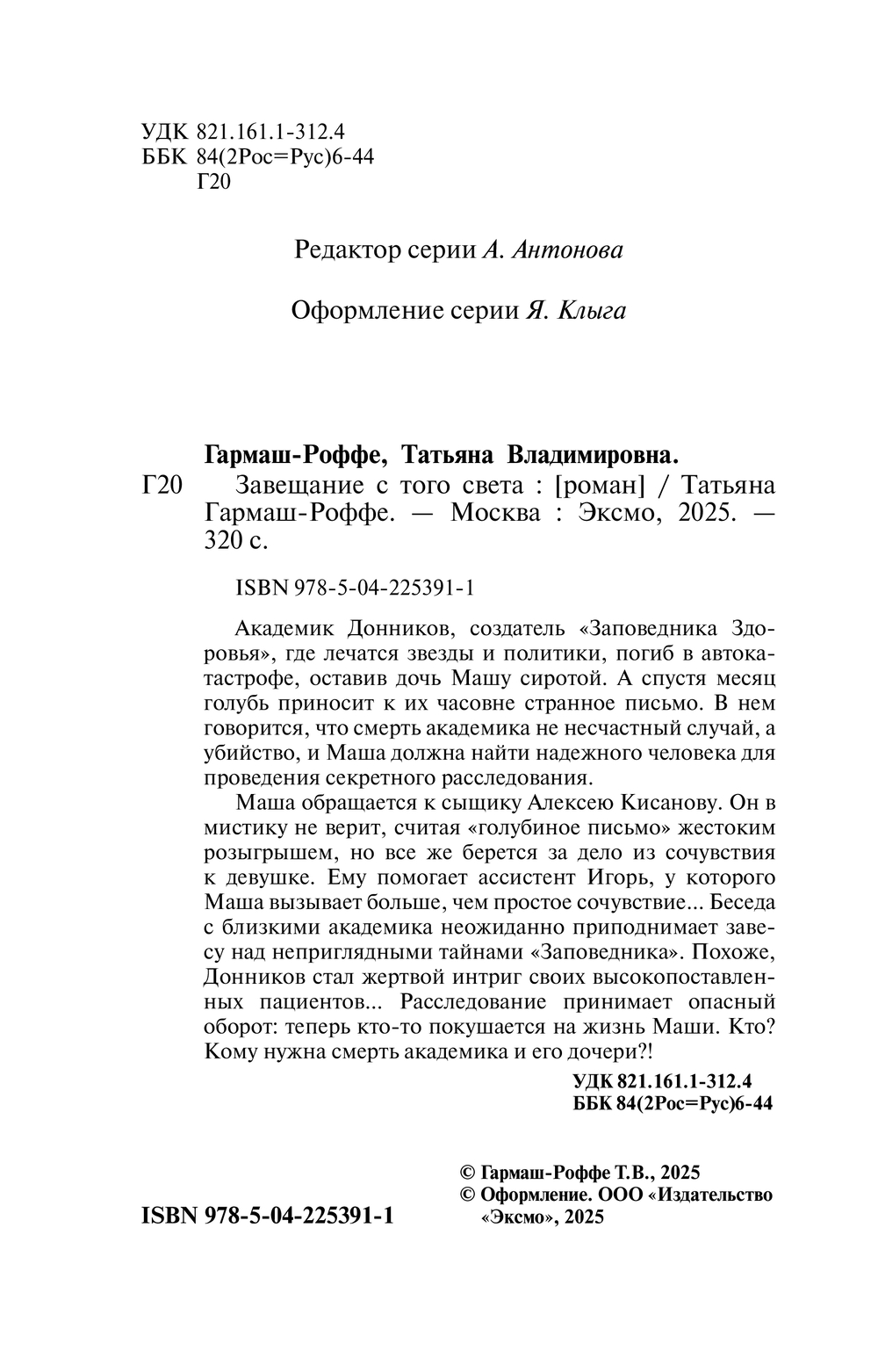 | Серия | Искусство детектива. Романы Т. Гармаш-Роффе |
