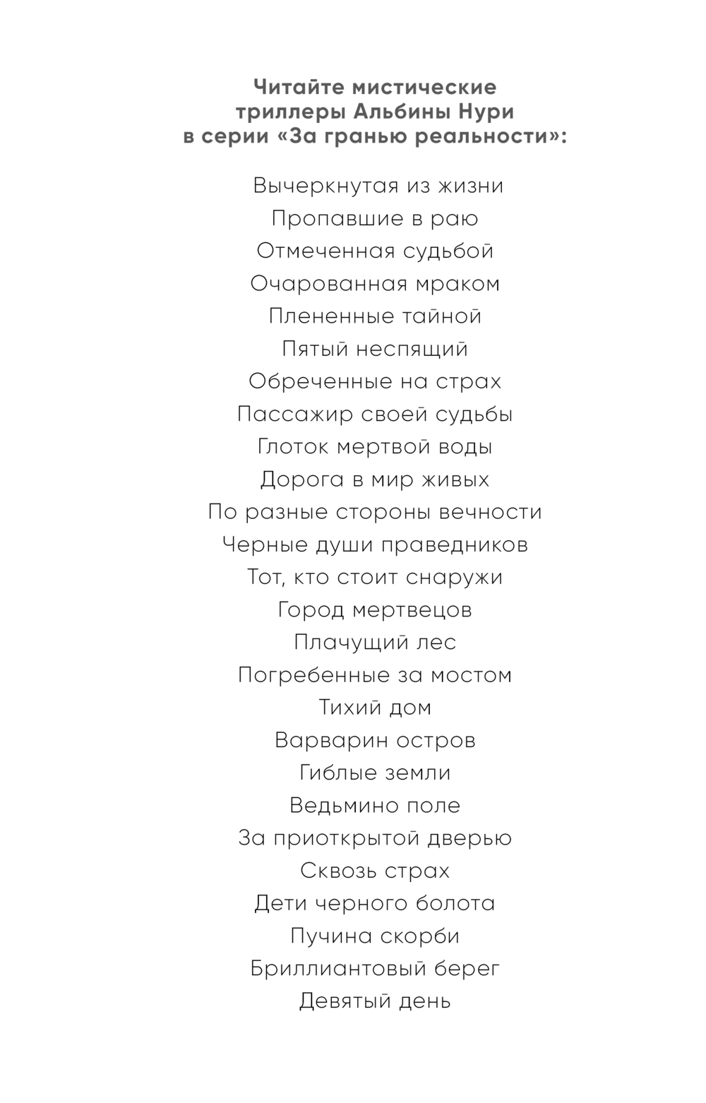 | Серия | За гранью реальности. Мистические триллеры Альбины Нури |