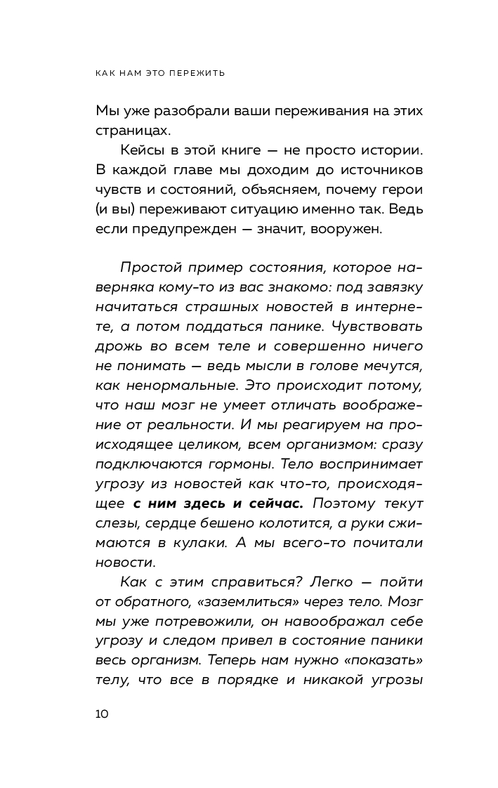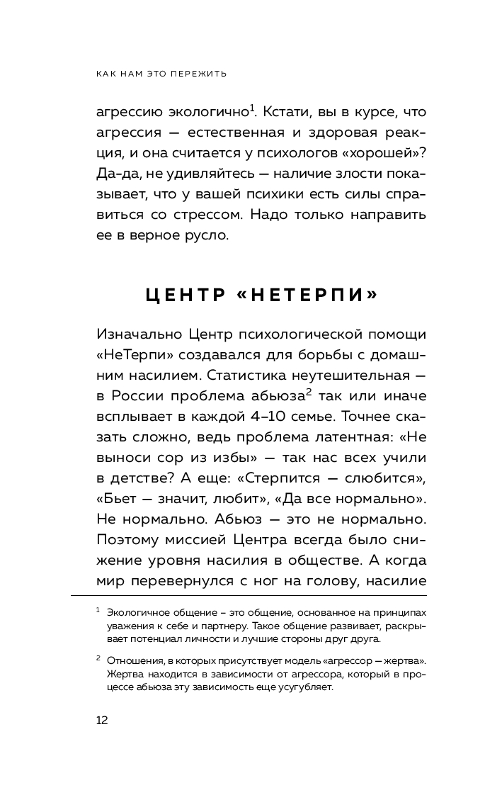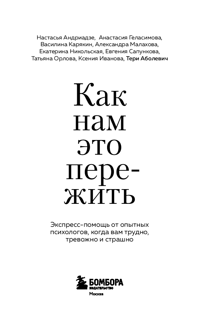 Эта книга написана командой опытных психологов Центра "НеТерпи". Несколько месяцев они поддерживают тех, кто не может поверить в реальность последних событий. В книге вы найдете несколько десятков историй с рекомендациями, которые помогут вам справиться с угнетающей тревогой, паническими атаками и коллективной травмой.