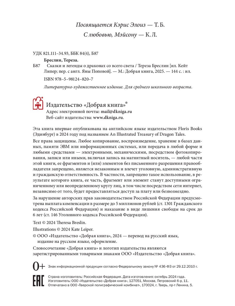 | Изготовитель | ООО "Издательство "Добрая книга". 121615, РФ, г. Москва, Рублевское шоссе, 16-3-261 |