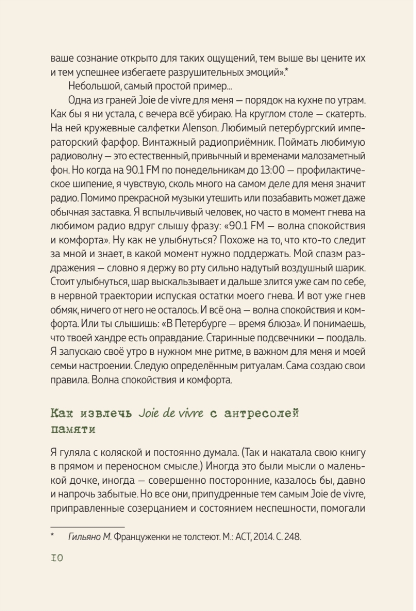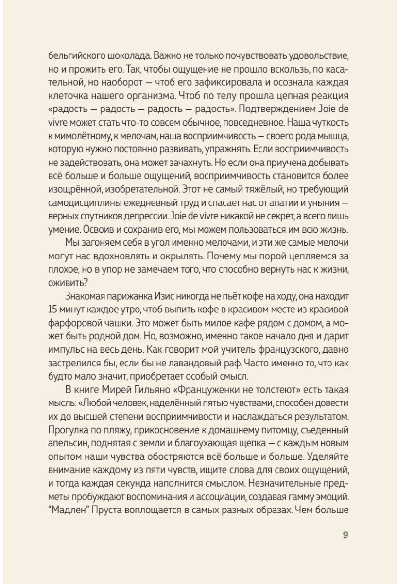 В книге Лилия Шпренгер наглядно, на примерах, легко, но убедительно рассказывает о том, как встроить Joie de vivre в жизнь. Радость, аппетит к жизни и ее изумительный вкус – всё это не только для французов, но в не меньшей степени – для каждого из нас!