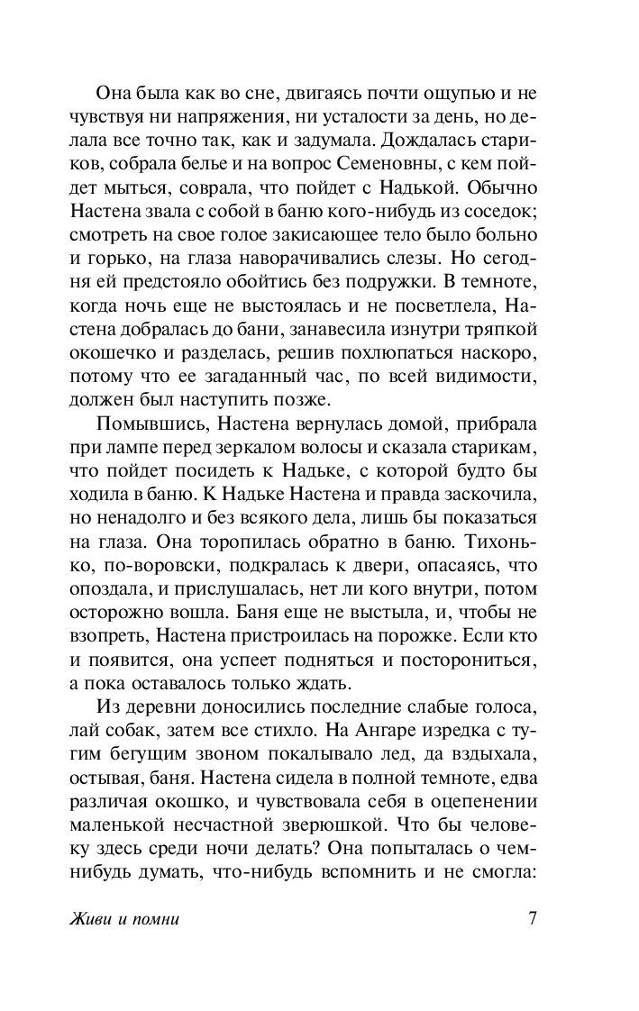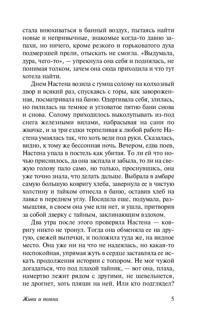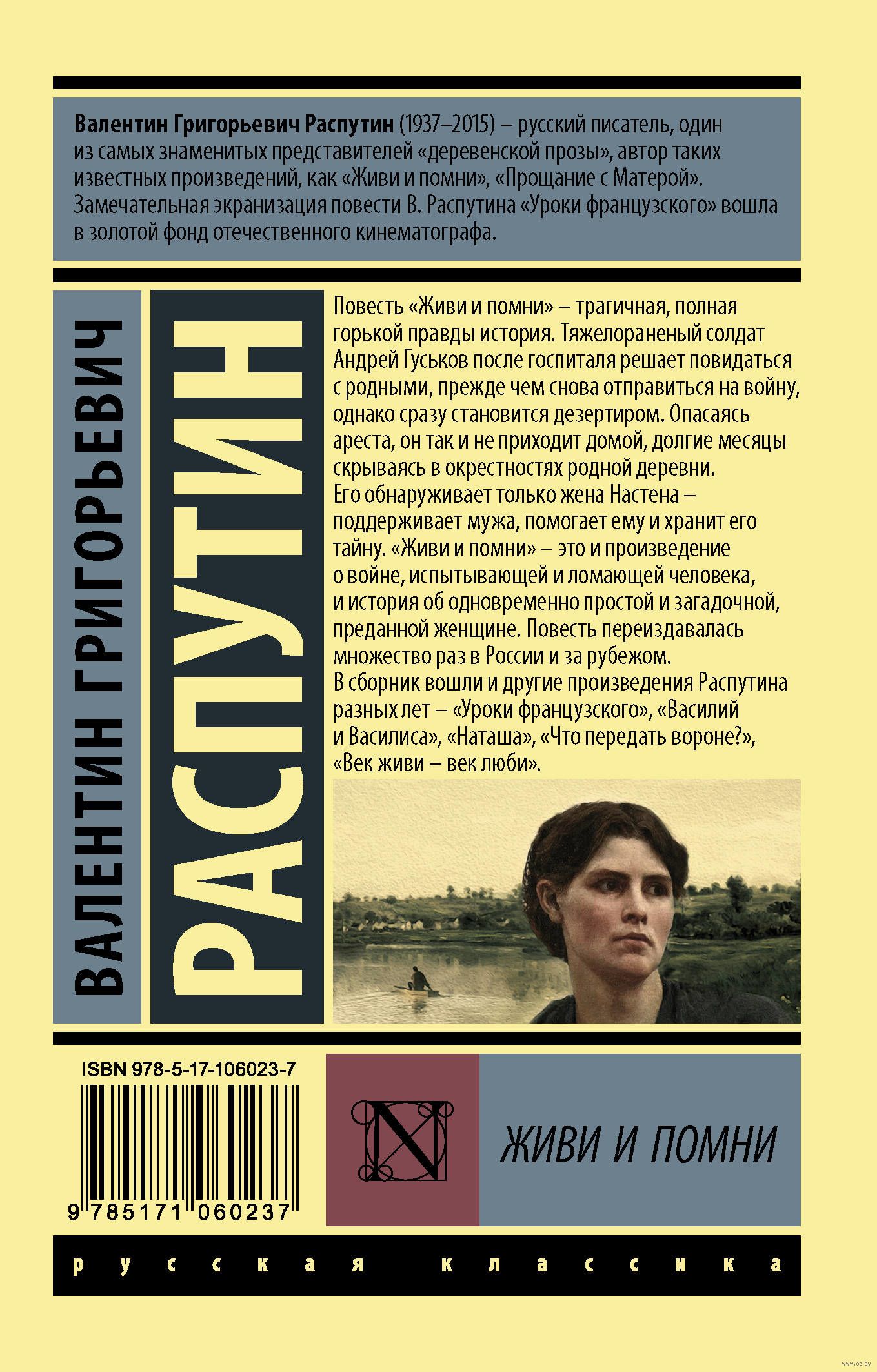 "Живи и помни" – это и произведение о войне, испытывающей и ломающей человека, и история об одновременно простой и загадочной, преданной женщине. Повесть переиздавалась множество раз в России и за рубежом.