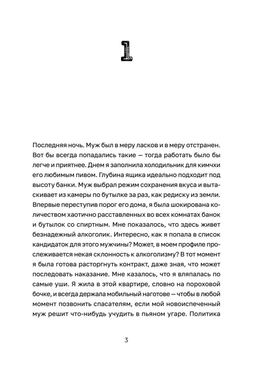 Четыре обручальных кольца едва заметно поблескивают на ладони Но Инджи. Она "временная жена" в элитном агентстве, где брак – это спектакль: безупречные церемонии, ночные объятия без страсти, уютные ужины без тепла. В New Marriage не любят, когда задают вопросы. Правда для них – лишний багаж, который на борт стараются не брать. Здесь нет места чувствам. Инджи знает об этом как никто другой. Но что-то меняется, когда один из ее прежних "мужей" вновь возникает перед глазами. Холодные улицы Сеула, пустые квартиры, чужие постели – где-то среди этого должна быть настоящая Но Инджи. Если, конечно, ее еще можно найти.