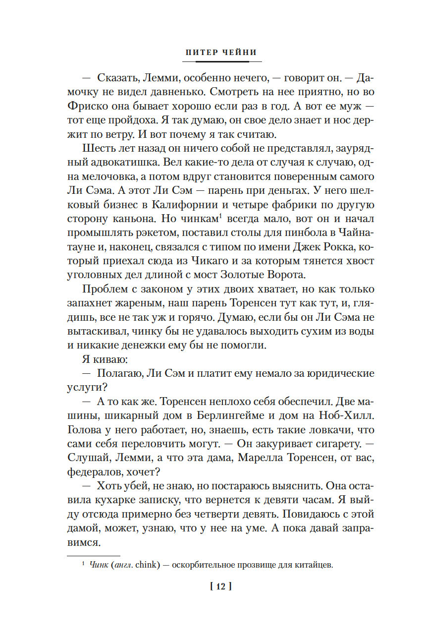 Когда директор ФБР получил письмо от некой Мареллы Торенсен с намеками на преступления государственного масштаба, разгадывать загадку он отправил Лемми Коушена. Явившись к автору письма в назначенное время, Лемми обнаружил, что дом пуст, а Марелла странным образом исчезла. Пустяковое, казалось бы, дело выльется в нелегкое расследование, в ходе которого Лемми столкнется с контрабандистами, наемными убийцами, китайской мафией и смертельно опасными красавицами.