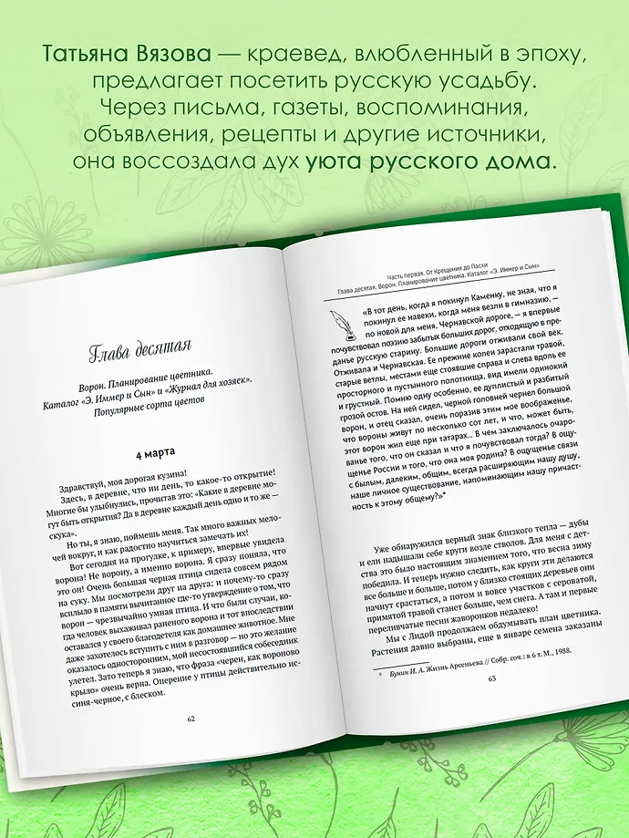 Откройте для себя мир русской усадьбы конца XIX – начала XX века с книгой Татьяны Вязовой! Автор, исследователь старинного быта и знаток дореволюционной жизни, провела масштабную работу, изучая библиотечные архивы, мемуары, воспоминания и исторические документы. Ей удалось воссоздать самую теплую и детализированную реконструкцию усадебной жизни.