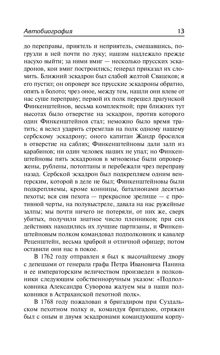 В сборник также вошли автобиография, трогательная переписка Суворова с его дочерью, Cуворочкой, а также воспоминания современников и исследования потомков. Эти произведения позволят вам взглянуть на великого полководца с разных сторон и помогут узнать одного из образованнейших людей XVIII века.