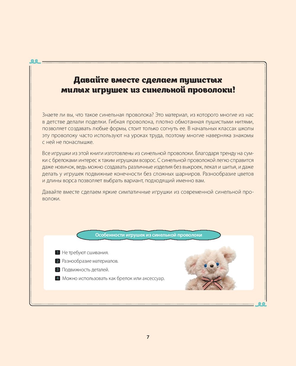 Погрузитесь в увлекательный мир творчества с синельной проволокой – мягким, ярким и податливым материалом, из которого легко создавать очаровательные игрушки! С этой книгой вы освоите технику скручивания и декорирования, шаг за шагом создавая 12 милых зверушек: панд, собачек, лягушек, мышек и даже квокк. Вы влюбитесь в процесс с первой игрушки и уже не сможете остановиться!