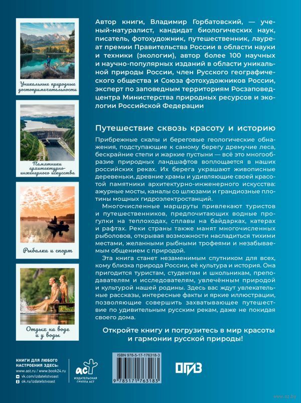 Первое издание, посвященное наиболее выдающимся и уникальным рекам России, включает очерки, сопровождаемые авторскими фотографиями, по таким рекам как: Москве – главной реке Российского государства; великим рекам, протяженность которых превышает 3000 км – Волге, Оби, Енисею, Лене и Амуру; широко известным крупным рекам Оке, Каме, Дону, Северной Двине, Печоре, Кубани, Тереку, Катуни, Ангаре, Уссури.