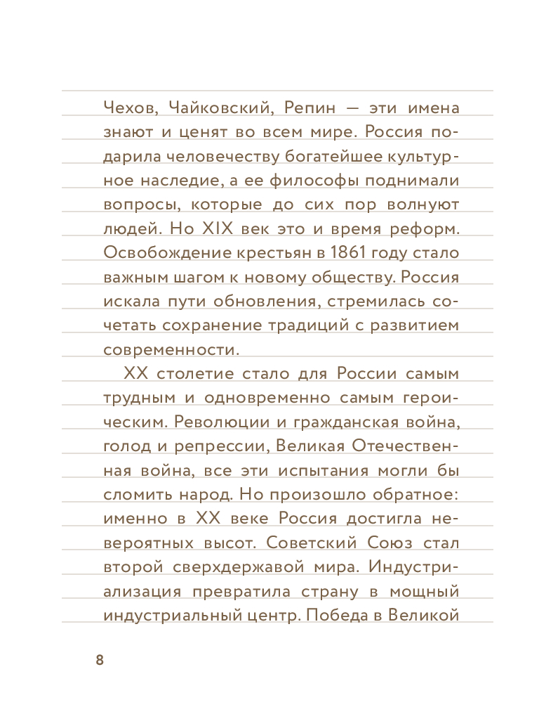 На страницах книги "55 фактов о России" оживает мозаика прошлого от меховой торговли, которая сделала Новгород центром европейской экономики, до древнерусских летописцев, писавших свои хроники как "книгу жизни" для Страшного суда.