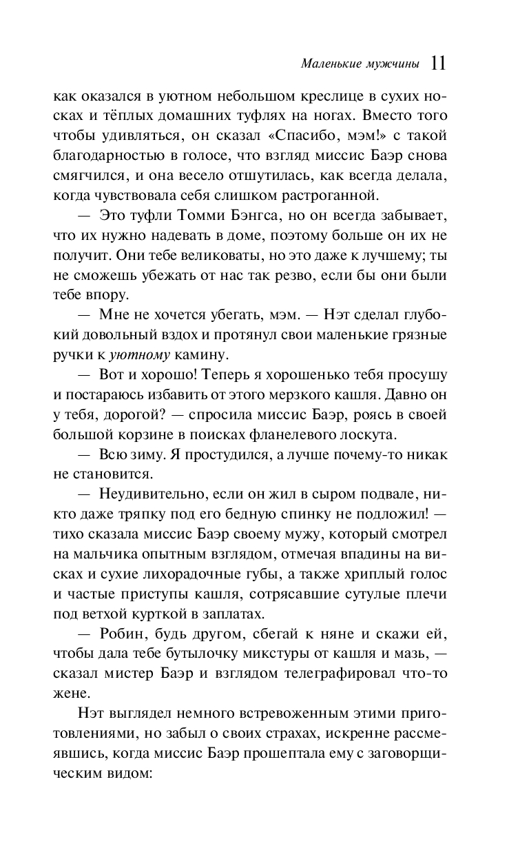 После оглушительного успеха "Маленьких женщин" и "Хороших жен", Олкотт создала третий роман о девушках семейства Марч – "Маленькие мужчины" Неутомимая Джо открыла школу и дала приют сорванцам разных характеров и возрастов. Не придумывая строгих правил, она показывает, что добро способно творить чудеса.